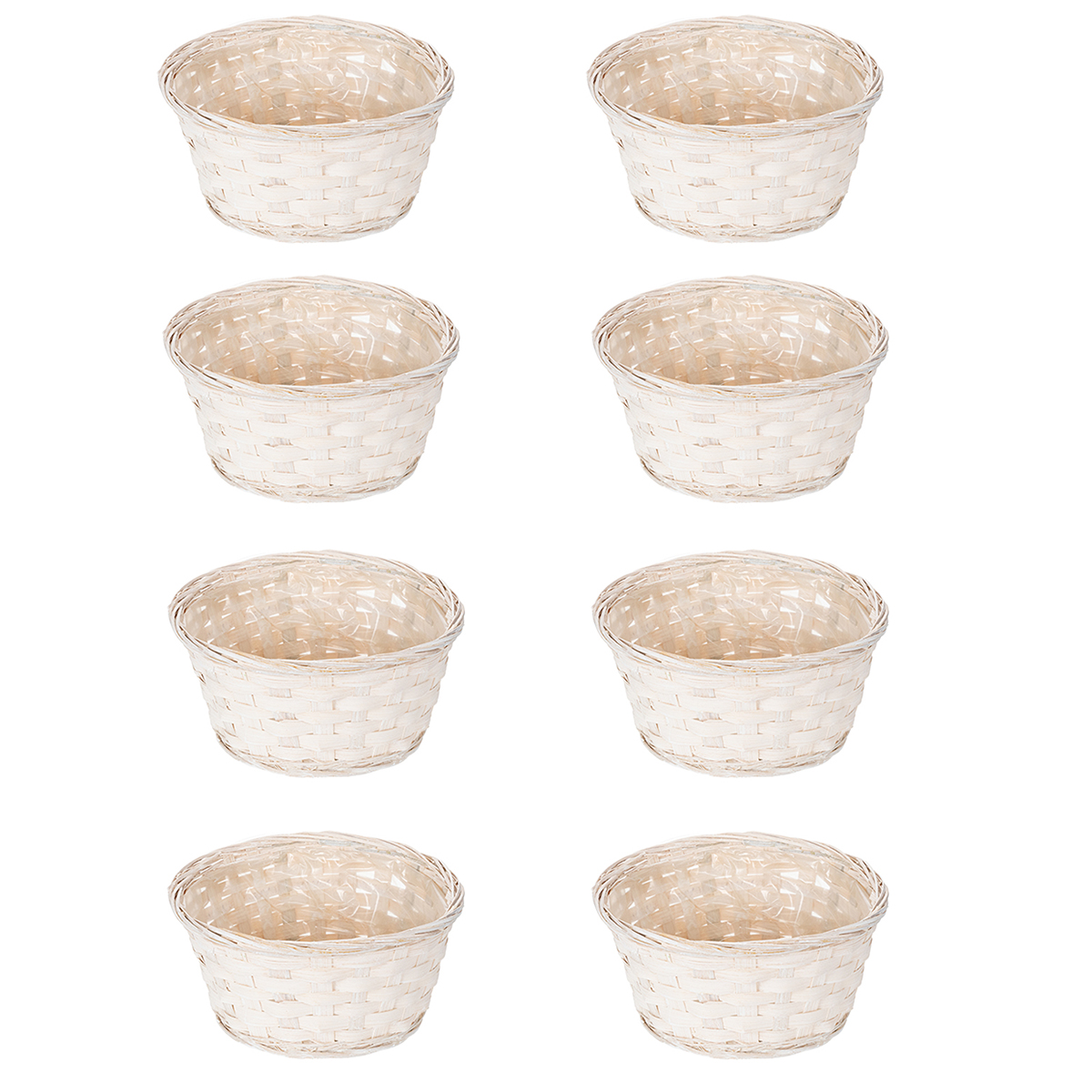 Šis aštuonių baltų pintų krepšelių rinkinys jūsų namams suteiks dekoratyvinį perlą. Įmantriai supintas skaldytas gluosnis spinduliuoja natūraliu lengvumu ir yra pakankamai tvirtas, kad būtų galima jį naudoti įvairiems tikslams. Nesvarbu, ar tai būtų laikymo krepšelis vonios kambaryje smulkiems daiktams, pavyzdžiui, vatos diskeliams, ar žavingas šventinių progų akcentas – galimybės neribotos. Šie krepšeliai ypač puikiai tinka Velykoms, nes leidžia sukurti asmeninius lizdelius, pripildytus saldumynų ar mažų dovanėlių.