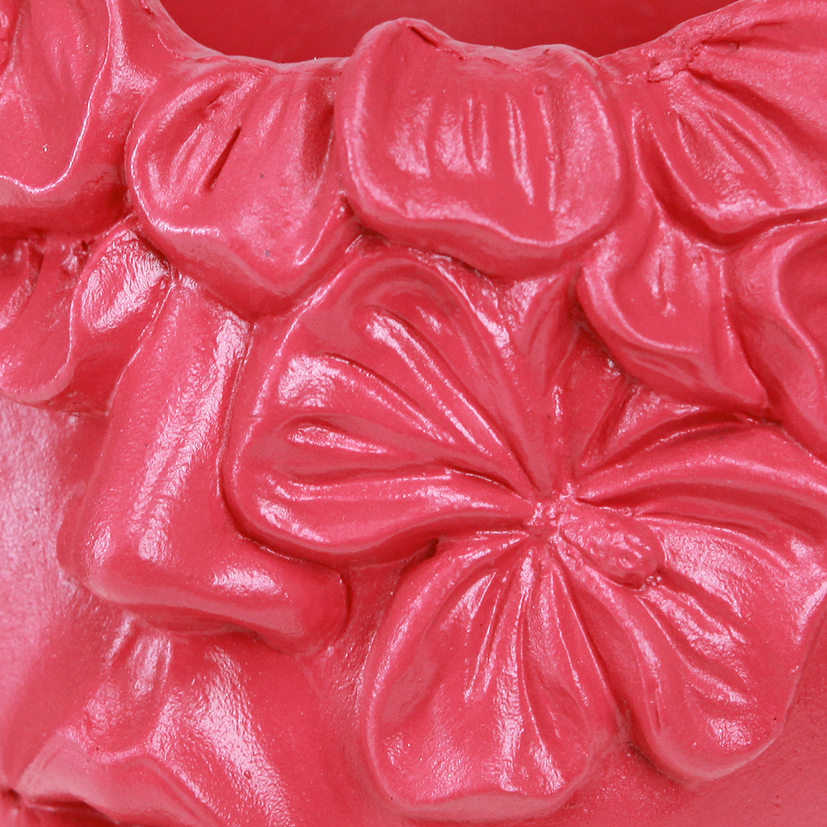 Gėlių kalba ryškiai rausva augalo galvutės spalva simbolizuoja žaismingumą, jaunatviškumą ir energiją. Šis atspalvis suteikia gyvumo bet kuriam kambariui ir gali skatinti džiaugsmą bei kūrybiškumą. Polirezinas, kaip medžiaga, suteikia sodintuvui patvarią ir lengvai prižiūrimą tekstūrą, kuri idealiai tinka dekoratoriams ir amatų entuziastams, ieškantiems lanksčios, bet patvarios apdailos. Rožinė spalva gali būti derinama su švelniais pasteliniais tonais arba kontrastingomis spalvomis, tokiomis kaip žalia ar balta, kad pabrėžtumėte norimą atmosferą.