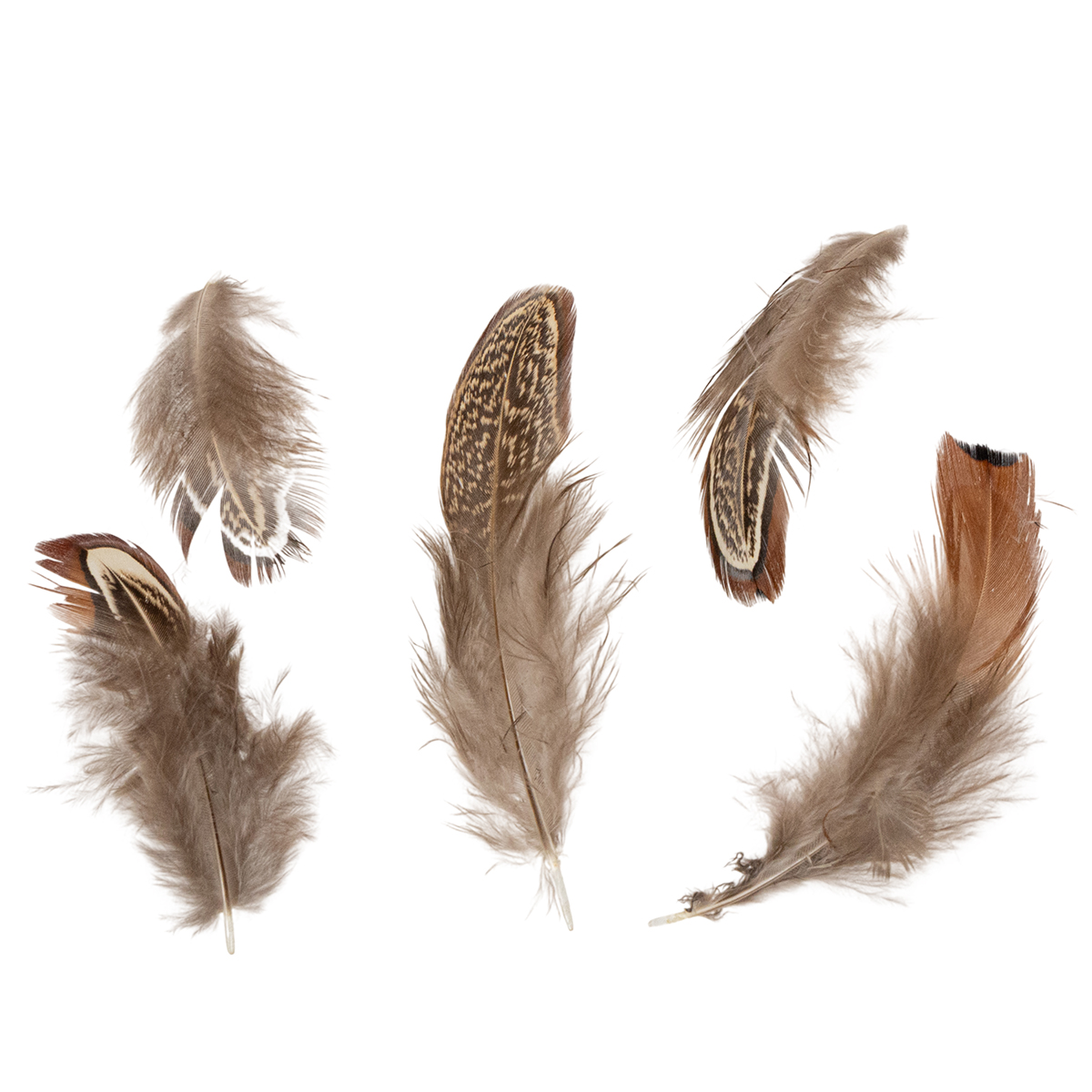 Rankdarbiai su plunksnomis – tiesiog smagu! Nesvarbu, ar tai būtų sezoninės dekoracijos, dovanos, ar dekoratyvinis jūsų gyvenamosios erdvės akcentas – plunksnos atveria beveik neribotas kūrybiškumo galimybes. Mėgstate dirbti su natūraliomis medžiagomis? Tuomet mūsų natūralių spalvų fazanų plunksnos yra kaip tik jums tinkamas pasirinkimas. 5 cm ilgio jos idealiai tinka subtiliems projektams ir tuo pačiu sukuria ryškius akcentus. O kaip dėl pavasarinio stalo serviravimo ar su meile pagamintos „pasidaryk pats“ dovanos? Šios plunksnos yra lengvos, universalios, o jų natūralūs rudi ir smėlio spalvos atspalviai suteikia šiltą ir harmoningą atspalvį bet kokiam projektui.