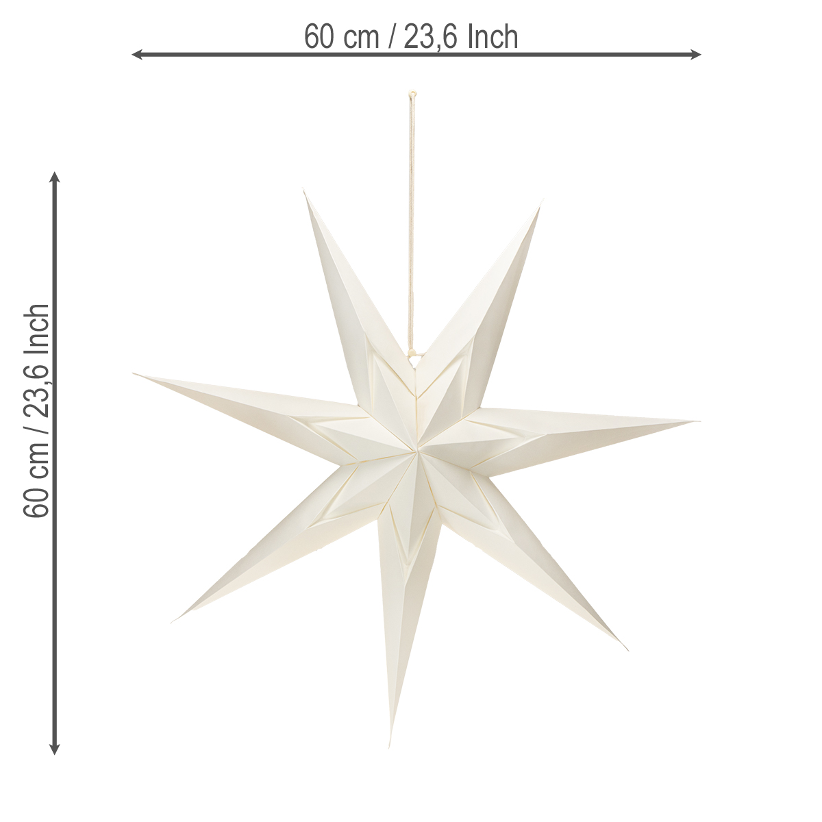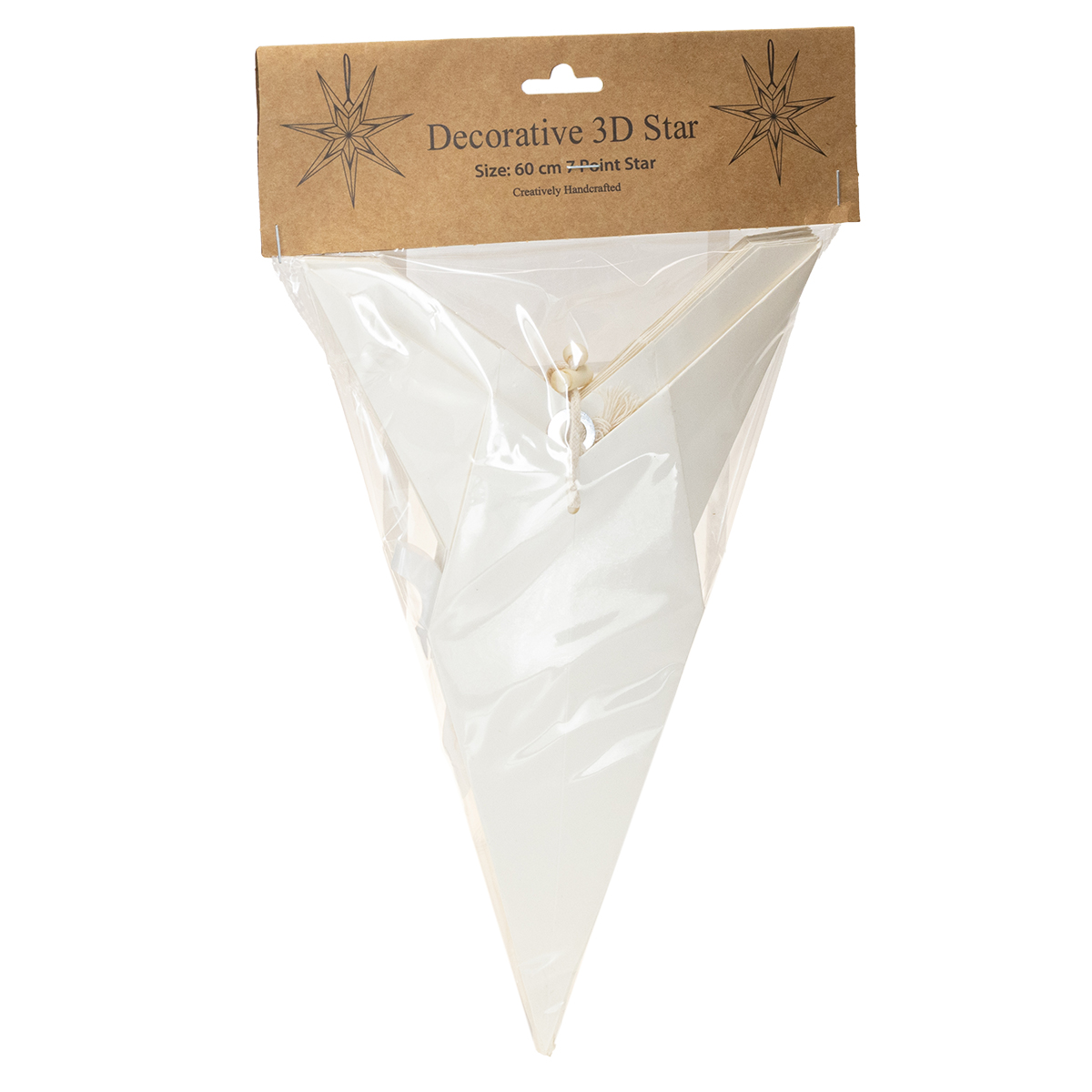 Produkto pavadinimas: Popierinė žvaigždė, kreminės baltos spalvos, didelė kabanti žvaigždė, 60 cm