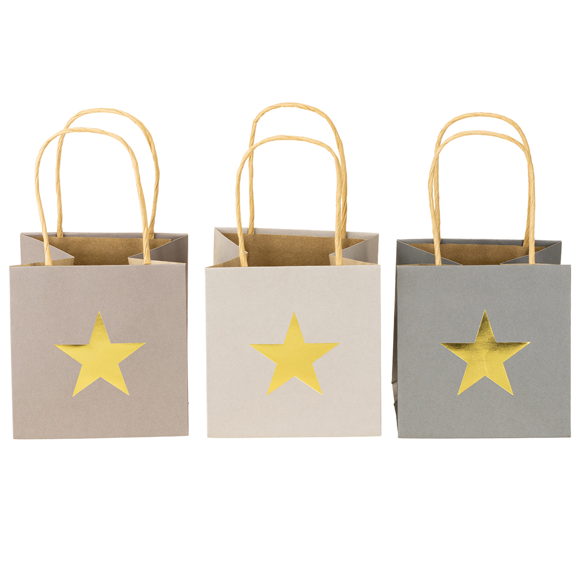 Popieriniai maišeliai su žvaigždute ir rankena pilkos spalvos asorti 10,5×10,5 cm 9vnt