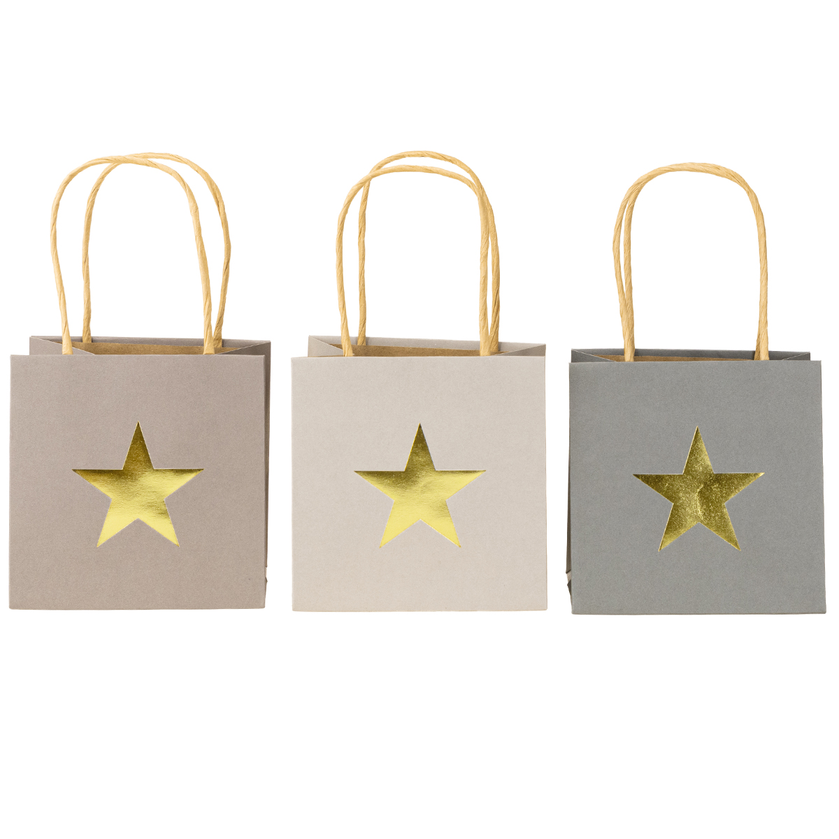 Gausite tris popierinius maišelius su trijų skirtingų pilkų atspalvių žvaigždute. Kvadratinius dovanų maišelius galima įsigyti atskirai šios versijos didesne versija mūsų parduotuvėje.