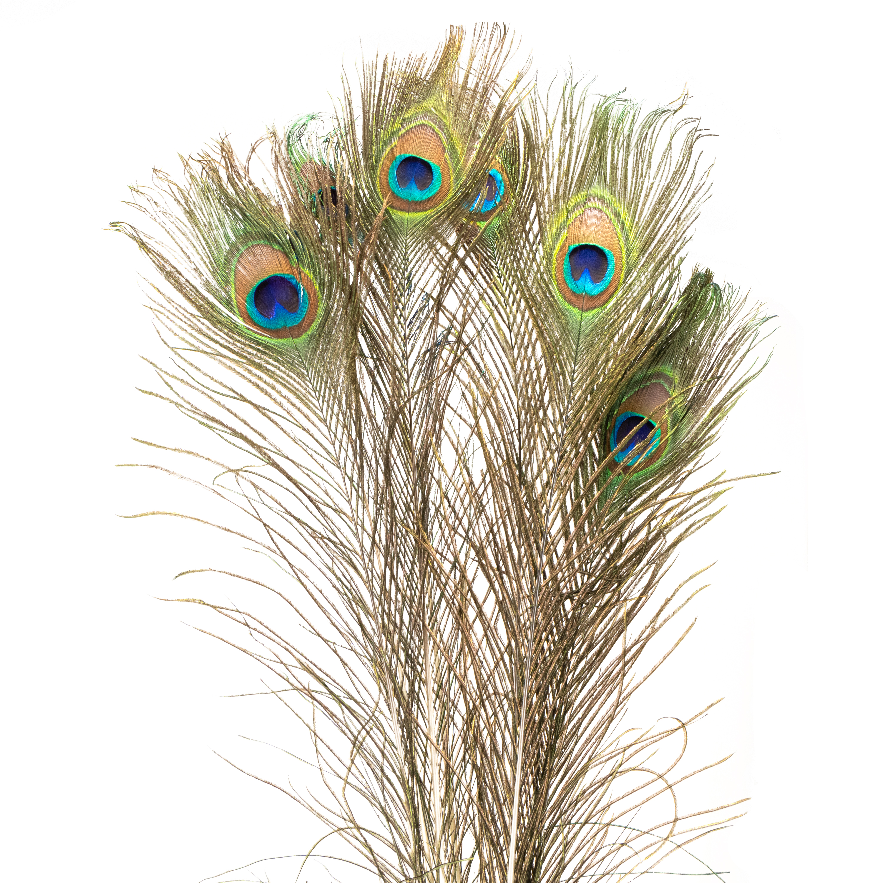Vaivorykštinės povo akys yra šių dekoratyvinių plunksnų akcentas. Šios kruopščiai rankomis atrinktos paukščių plunksnos turi ilgą, baltą kotelį, todėl puikiai tinka vazoms, bet jas taip pat galima priklijuoti, pririšti ar vielomis pritvirtinti prie baldų ir dekoracijų.