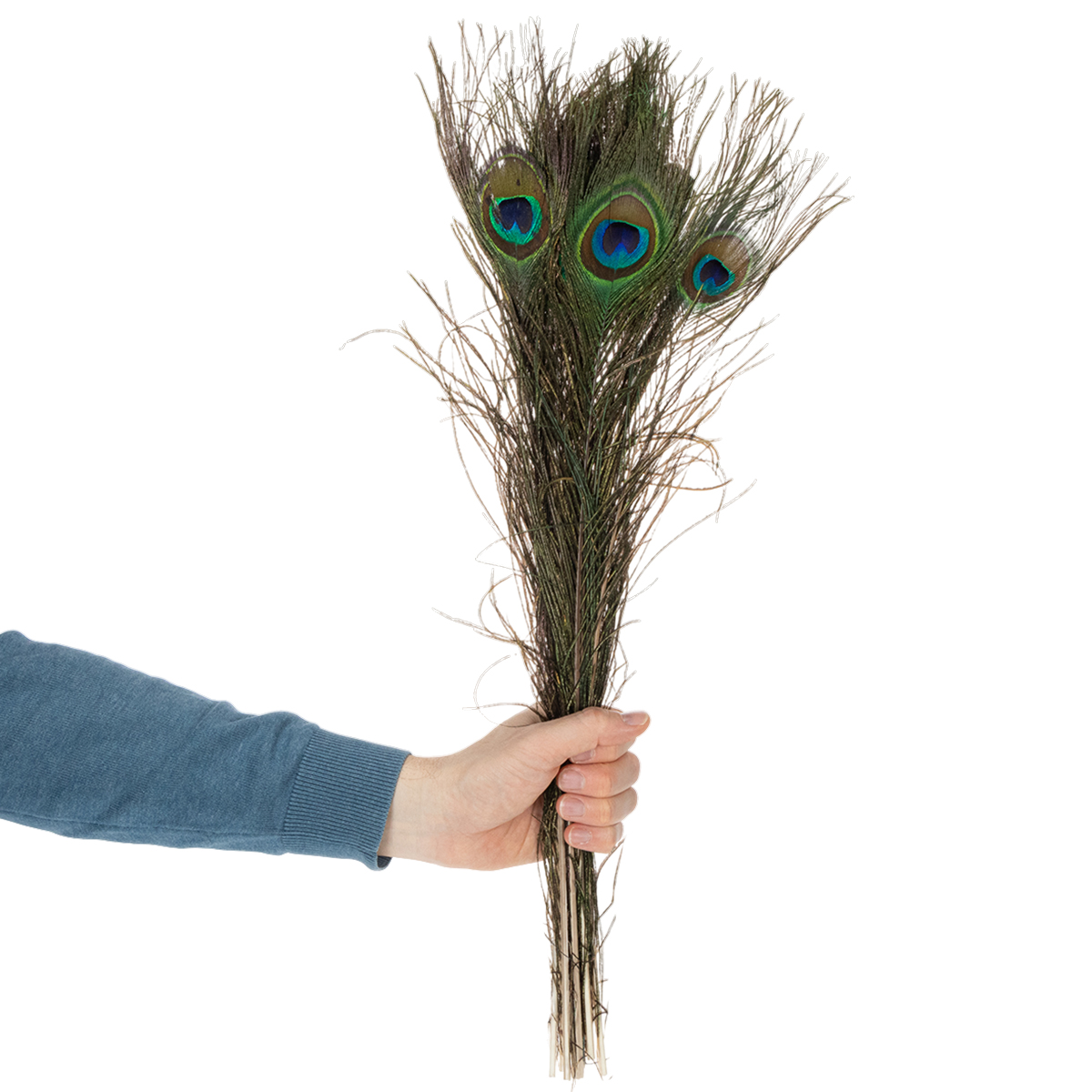 Kadangi gražios povo plunksnos yra natūralūs produktai, jų dydis gali labai skirtis: 10 natūralių plunksnų yra maždaug 50–60 centimetrų ilgio ir pristatomos jums plastikinėje pakuotėje.