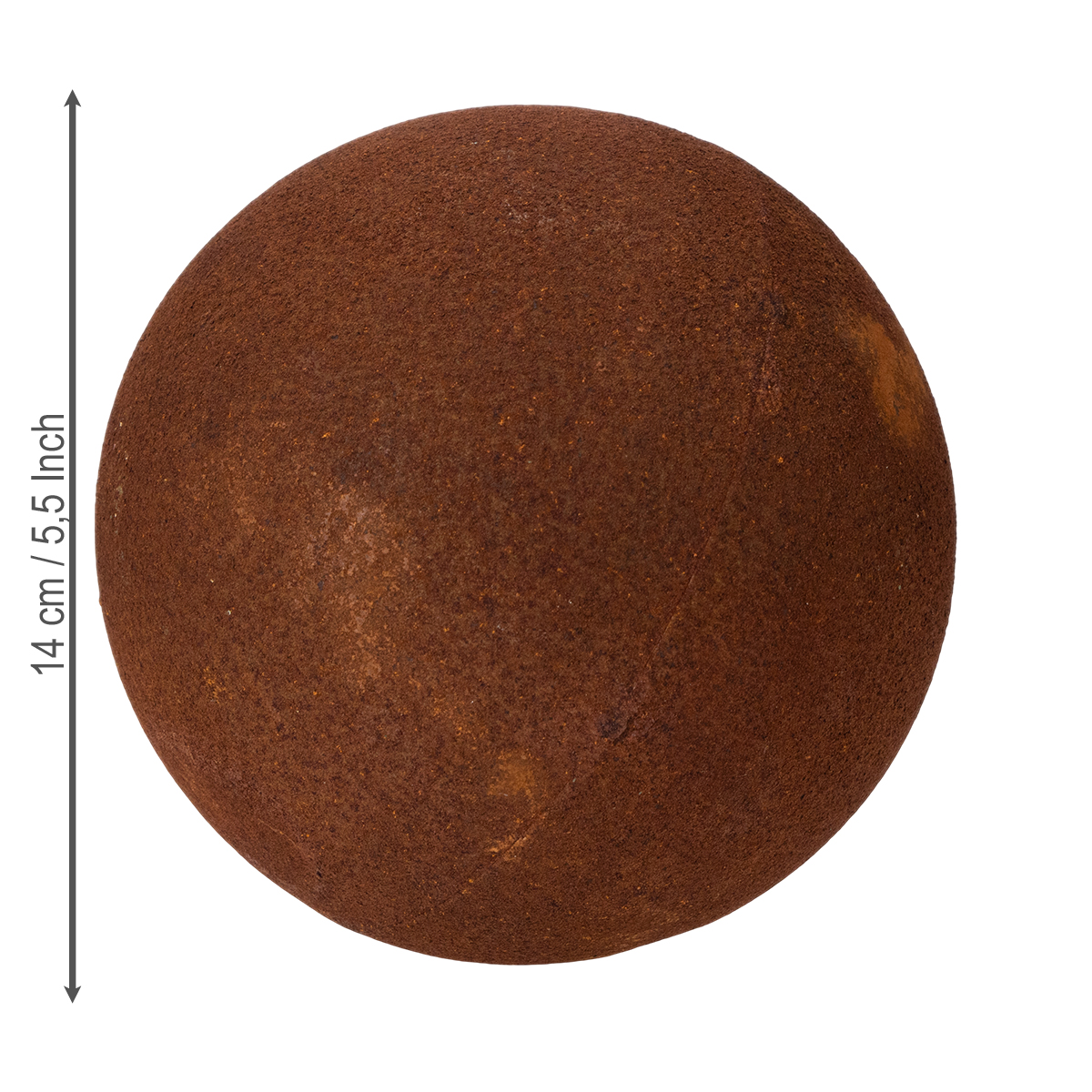Rūdžių spalvos sferinis dekoratyvinis elementas kaimiškam sodo dizainui, 14 cm, 2 vnt.