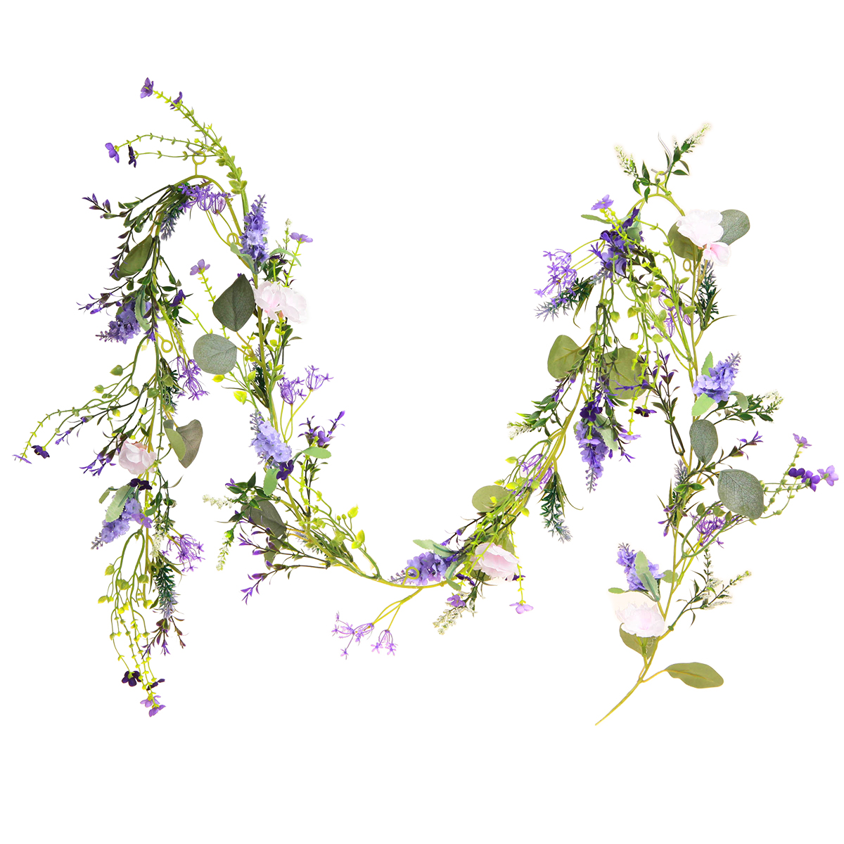 Levandų girliandą galima pakabinti ant sienos arba virš durų. Iš viso vienuolika mažų plastikinių žiedų vienoje girliandoje suteikia praktinę galimybę pritvirtinti dirbtinės gėlės dekoraciją prie kabliukų ar vinių.
