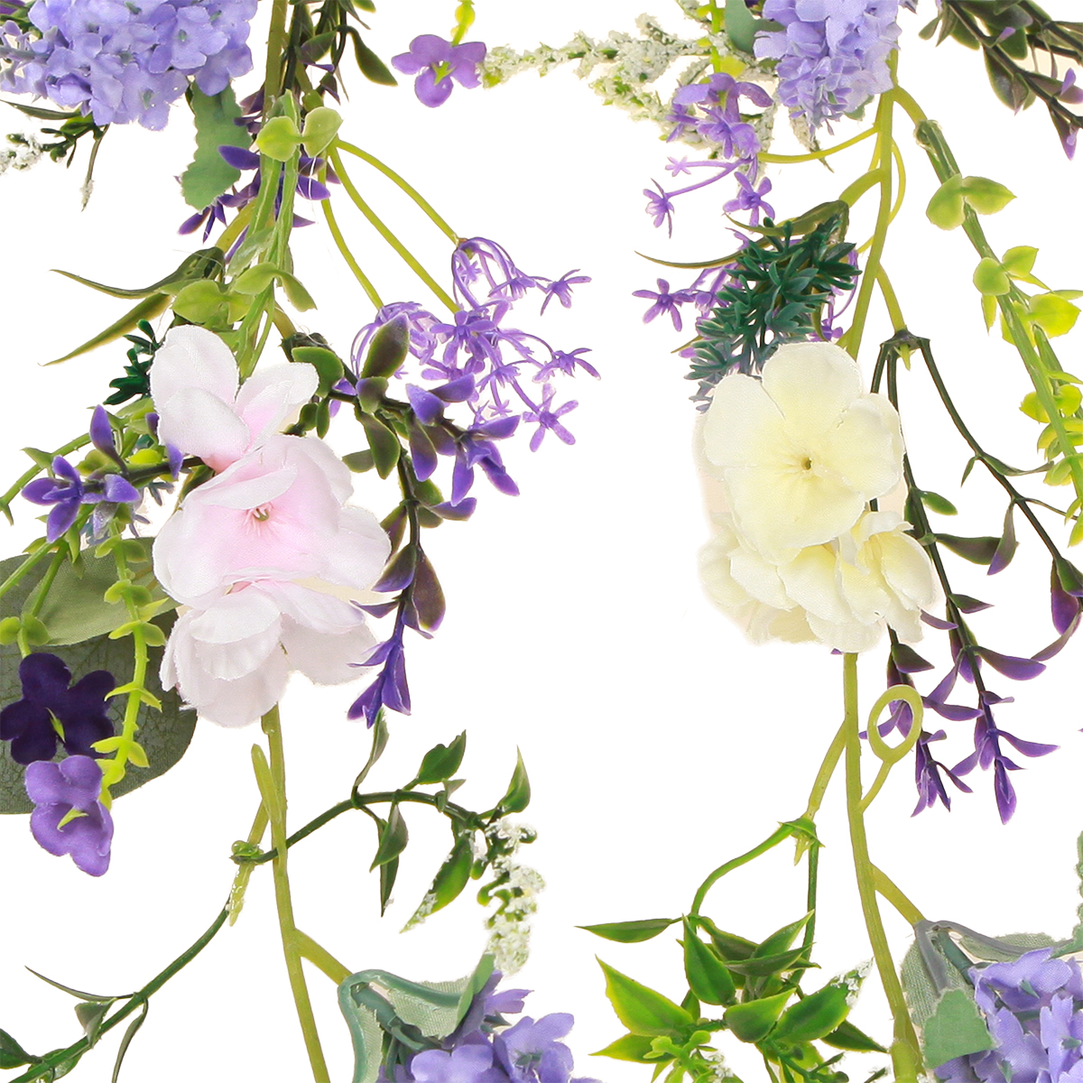 Produkto pavadinimas: Romantiška gėlių girlianda violetinės rožinės baltos spalvos L194cm 2vnt