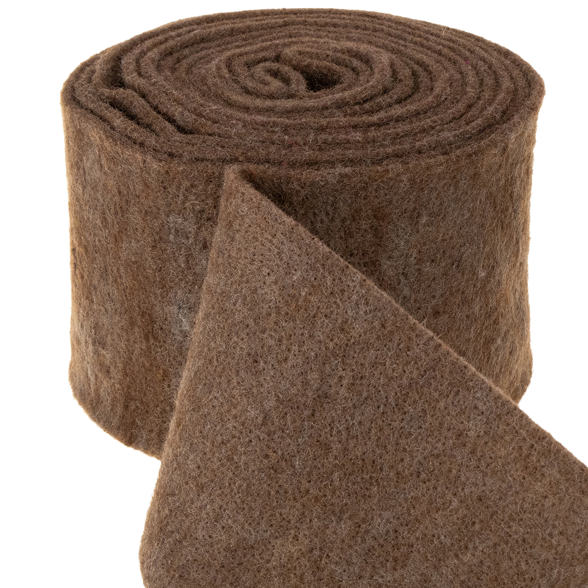 Produkto pavadinimas: Ruda vilnonė veltinio juostelė, 15 cm x 5 m, dekoravimui ir rankdarbiams