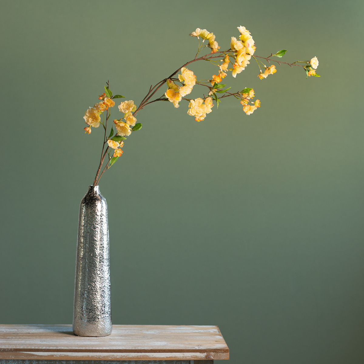 Suteikite savo namams ar renginio dekoracijoms ypatingą akcentą! Subtiliais žiedais ši geltona vyšnios žiedo šakelė spinduliuoja ne tik gaivumą, bet ir šviesią, svetingą atmosferą. Įsivaizduokite, kaip ši elegantiška šakelė pakeis jūsų svetainę, miegamąjį ar priimamąjį. Ar mėgstate gėles, bet nenorite nuolat jų prižiūrėti? Jokių problemų! Ši dirbtinė vyšnios žiedo šakelė sujungia grožį ir praktiškumą. Jos nereikia laistyti, tačiau ji atrodo taip pat žavingai kiekvieną dieną, kaip ir pirmąją dieną.