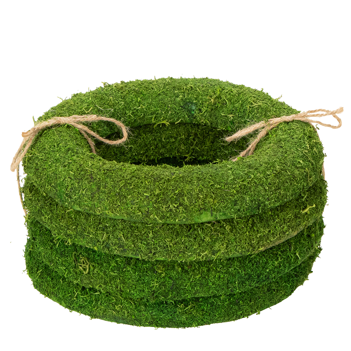 Produkto pavadinimas: Samanų vainikas – universalus pagrindas kūrybinei floristikai ir dekoravimo idėjoms, 20 cm, 4 vnt.