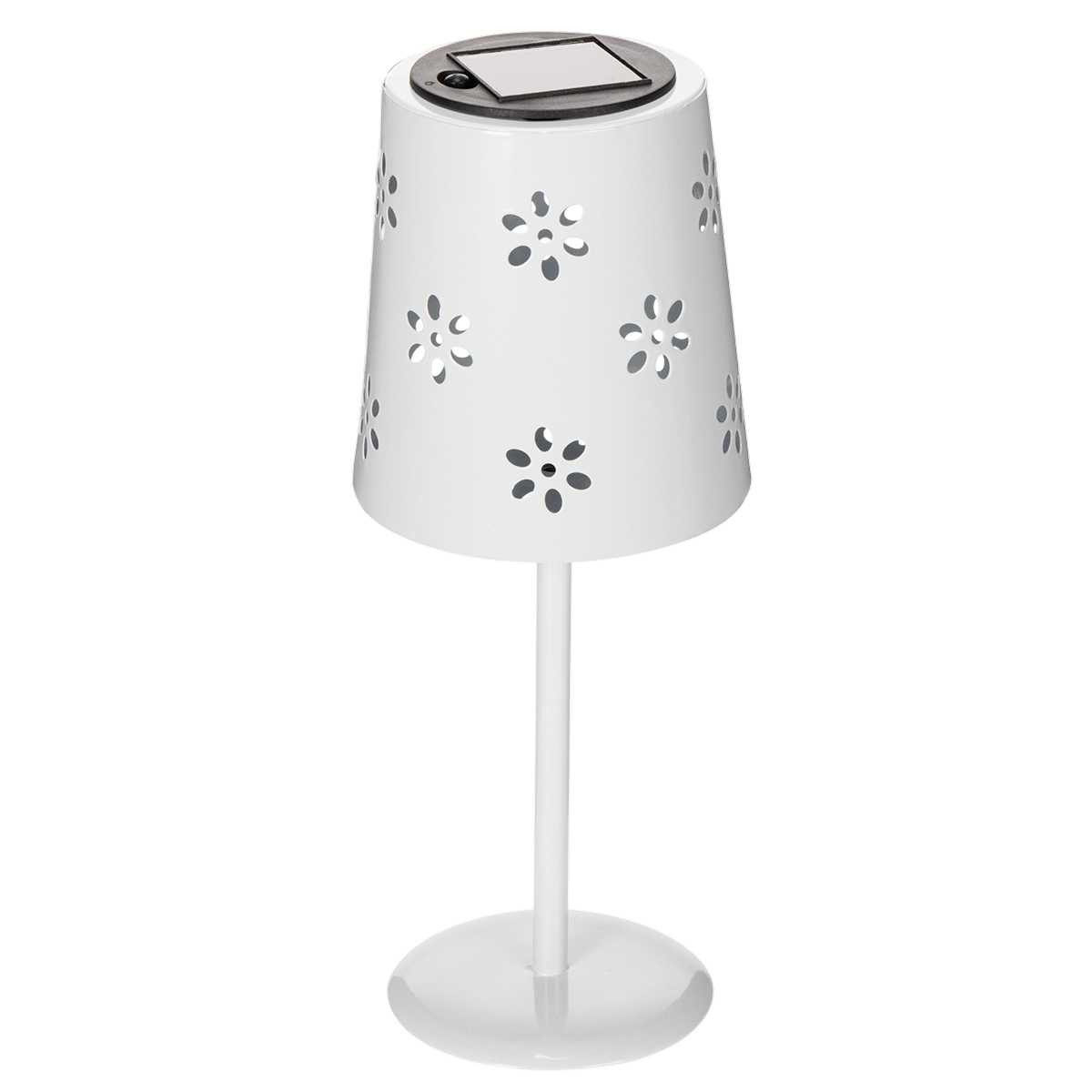 Saulės energija varomas stalinis šviestuvas su gėlių raštu balkonui, terasai ar sodui apšviesti, 28 cm