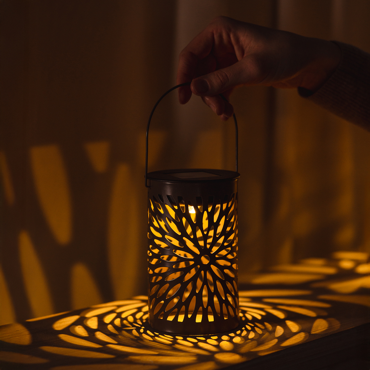 Mūsų saulės energija varomi žibintai sujungia funkcionalumą, patrauklų dizainą ir aukštos kokybės apdirbimą. Pagaminti iš tvirto metalo, jie atlaiko lengvą lietų ar vasaros orus ir tarnaus ilgus metus. Dėl praktiško dydžio – 22 cm aukščio su rankena ir 8 cm skersmens – juos lengva transportuoti ir išdėstyti pagal pageidavimą. Šiltai baltos šviesos diodai skleidžia malonią, viliojančią šviesą, kuri nėra nei akinanti, nei įkyri. Nesvarbu, ar kūrybiškai išsklaidysite žibintus vakarinio kepsninės vakarėlio metu, ar naudosite juos kaip atmosferinį apšvietimą romantiškame balkone, jie papildys bet kokį stilių. Jie ypač stulbinamai atrodo bohemiškoje ar vintažinėje aplinkoje. Tie, kurie mėgsta natūralius atspalvius, įvertins suderintą spalvų derinį. Žibintus galite idealiai derinti su lauko vazonais ar kitais dekoratyviniais saulės šviestuvais, kad sukurtumėte harmoningą bendrą vaizdą.