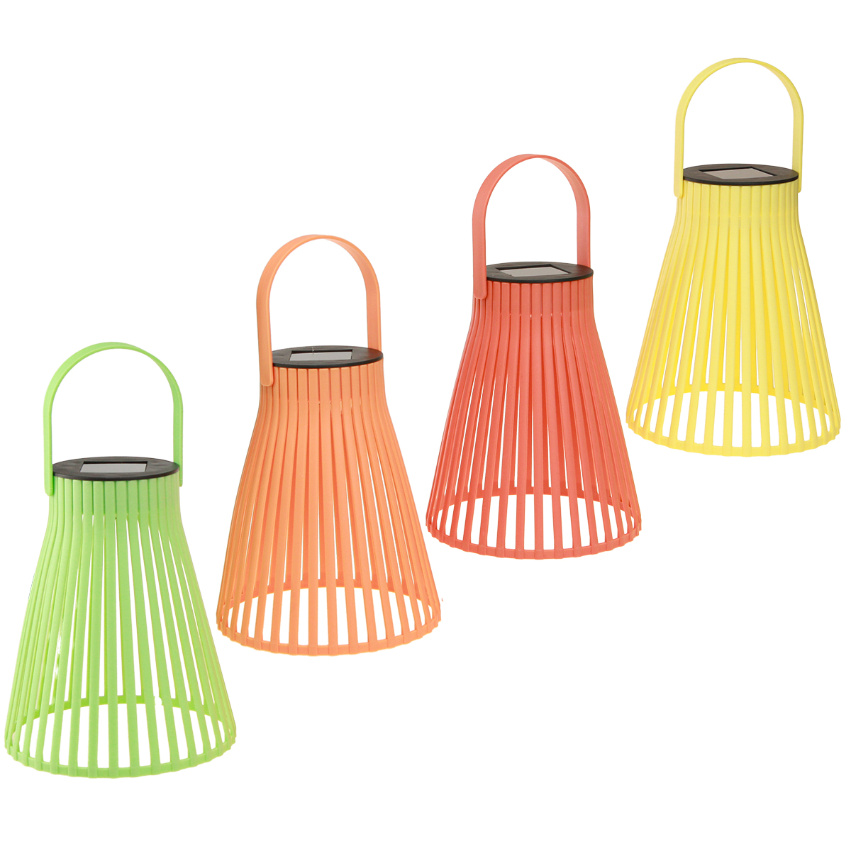 Padidinkite savo lauko erdves naudodami mūsų spalvingus saulės sodo žibintus, keturių ryškių spalvų pakabinamus LED žibintus: žalią, geltoną, oranžinę ir raudoną. Kiekvienas saulės šviestuvas turi tvirtą retro stiliaus kūgio formos abažūrą, kuris žavi stilingais senovinės išvaizdos akcentais. Į išlygintą sodo žibinto galiuką integruotas saulės modulis suteikia aplinkai nekenksmingą energiją, o laikmačio funkcija su 6 valandų įjungimu ir 18 valandų išjungimu garantuoja optimalų naudojimą. Nesvarbu, ar kaip vasaros vakarėlių puošmena, ar kaip akcentas terasose ir balkonuose – šie sodo šviestuvai yra puikus pasirinkimas kiekvienai progai.