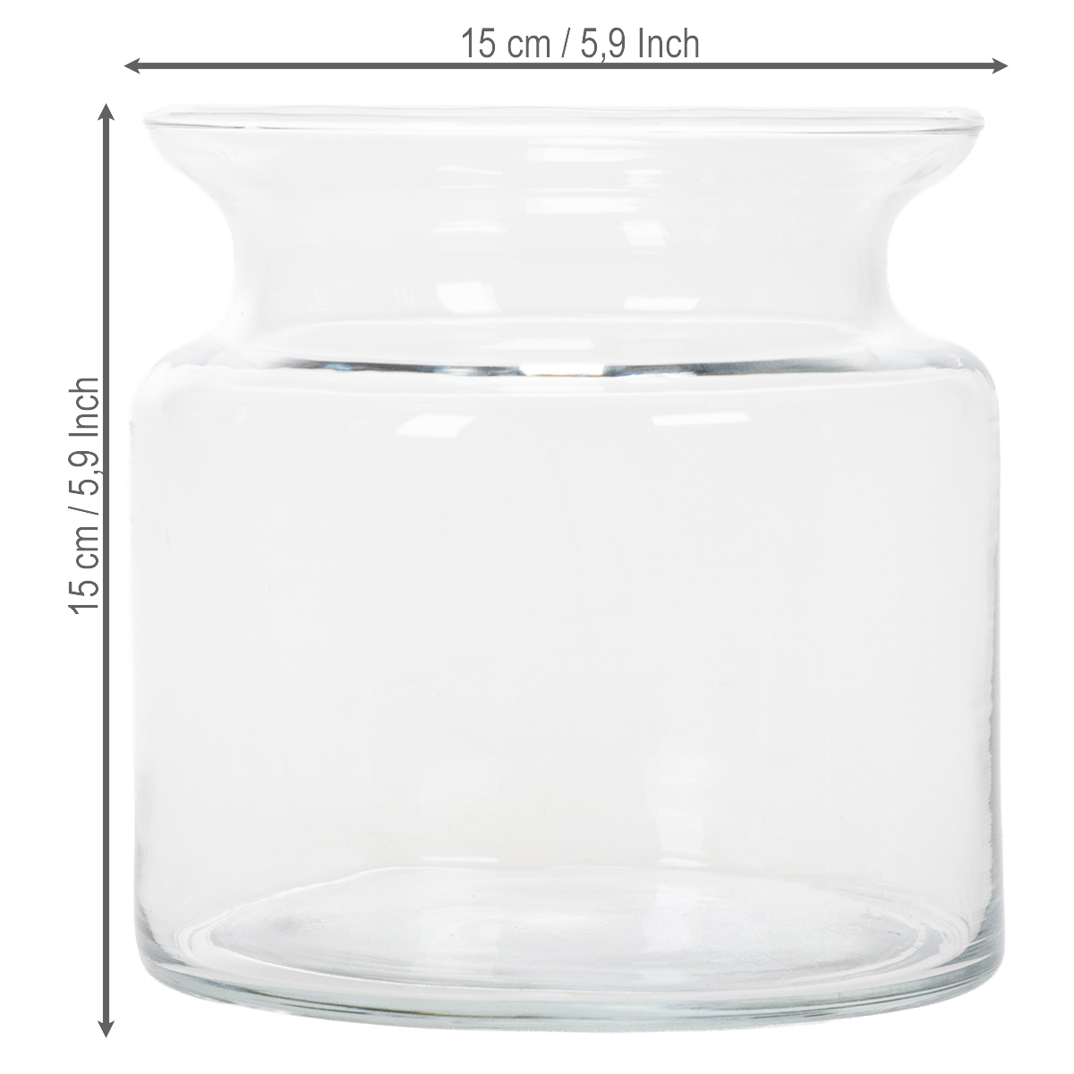 Skaidraus stiklo vaza, dekoratyvinė stiklinė vaza su kraštu, žvakidei arba gėlių vazai, 15 cm