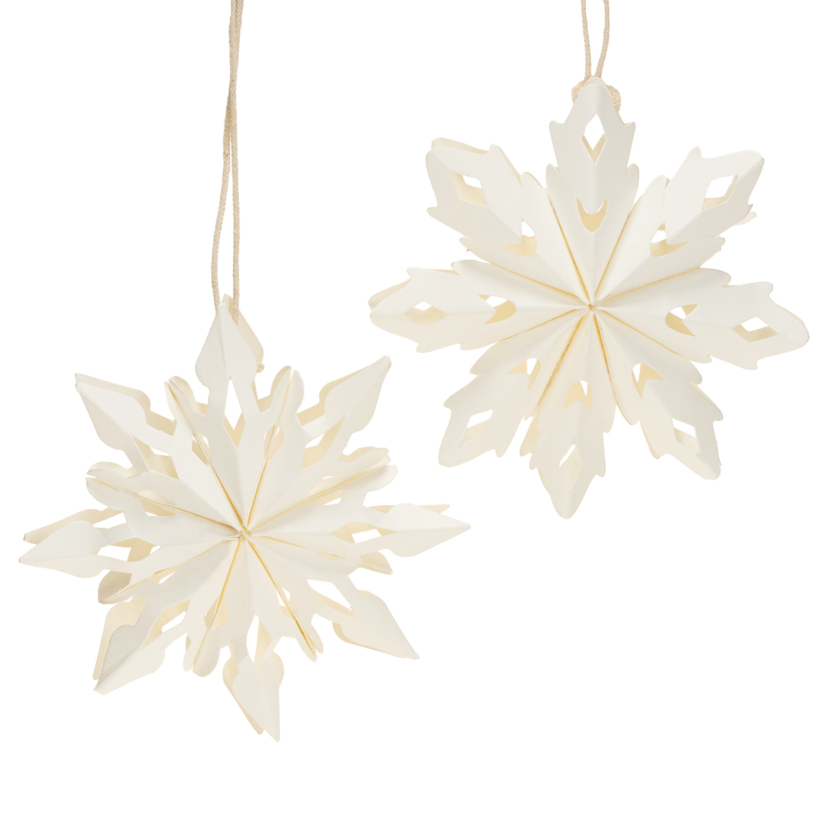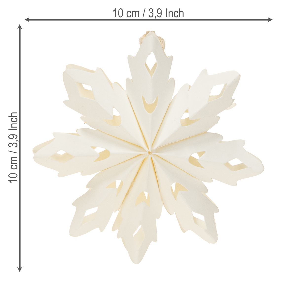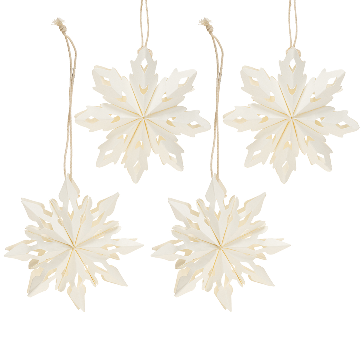 Snaigių formos popierinės dekoracijos pakabinimui, baltos, 10 cm, 4 vnt.