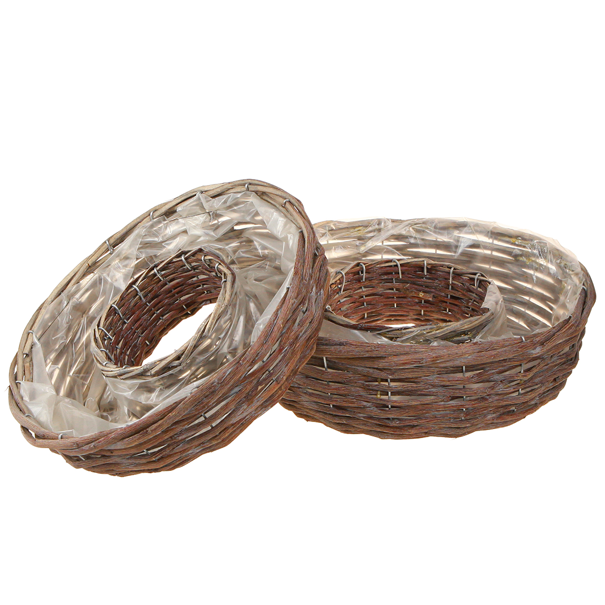 Suteikite savo balkonui ar terasai kaimišką atspalvį su natūraliais mediniais augalų žiedais. Šis išskirtinis 2 rinkinys susideda iš dviejų skirtingų dydžių augalų žiedų, pagamintų iš aukštos kokybės rotango ir skalbtos pilkos spalvos. Natūralaus medžio ir tvirto metalinio rėmo derinys viduje užtikrina ne tik patrauklią išvaizdą, bet ir ilgaamžiškumą. Sodinimo padėklų vidus išklotas plėvele, leidžiančia nedelsiant sodinti. Ar kaip įspūdinga puošmena pavasariui ir vasarai, ar kaip stilingas jūsų asmeninio Advento vainiko pagrindas – panaudojimo galimybės yra įvairios. Rekomenduojame naudoti drenažą iš keramzito arba žvyro, kad išvengtumėte vandens užmirkimo ir jūsų augalai būtų tinkamai prižiūrimi. Maždaug 30 cm ir 35 cm skersmens jie puikiai tinka mažiems ir didesniems augalams.