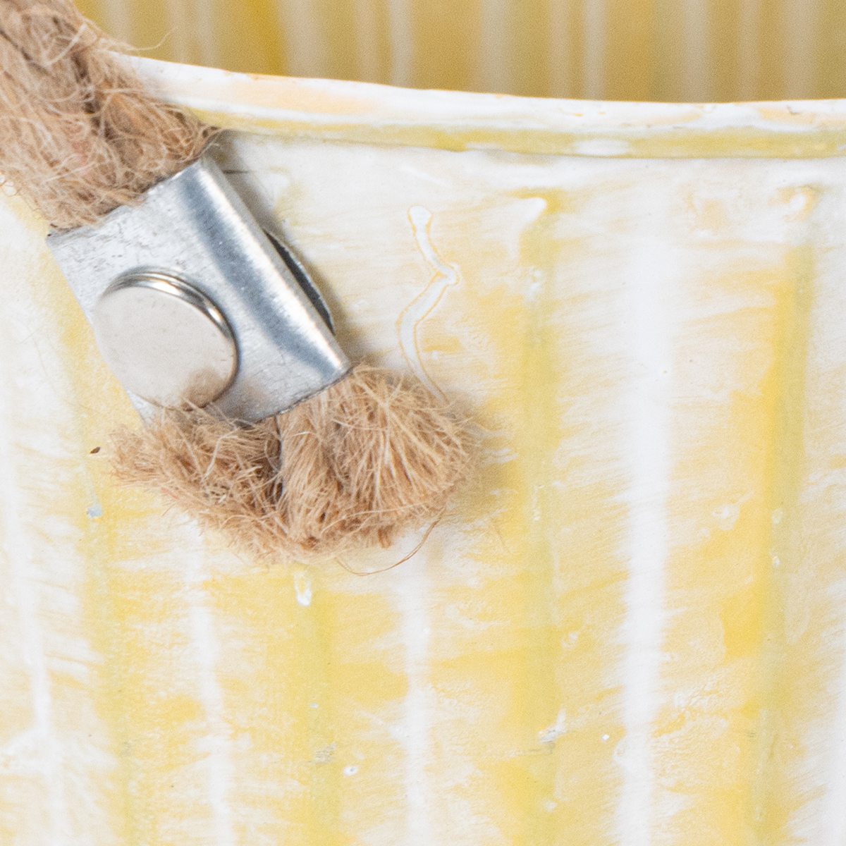 Sodinimo kibiras, metalinis vazonas su rankenomis, dekoratyvinis vazonas, rožinės/žalios/geltonos spalvos, „shabby chic“, Ø12 cm, aukštis10 cm, 3 vnt. rinkinys