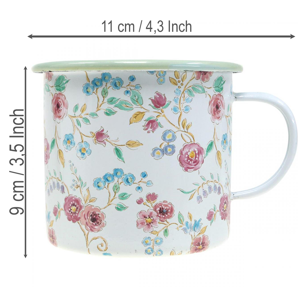 Taip pat šiuo augalų vazonu ir vasarine gėle galite stilingai papuošti nedidelę palangę. Kaip gėlių vazonas, puodelis leidžia stalo puošmenai ar laisvai vietai virtuvėje suspindėti emaliuotu blizgesiu. Be to, emaliuotas puodelis kartu su nedidele rožele yra puiki dovanos idėja vasaros vakarėliui kaip suvenyras – lažinkitės, kad pasodintas puodelis iš karto papuoš kavos staliuką?