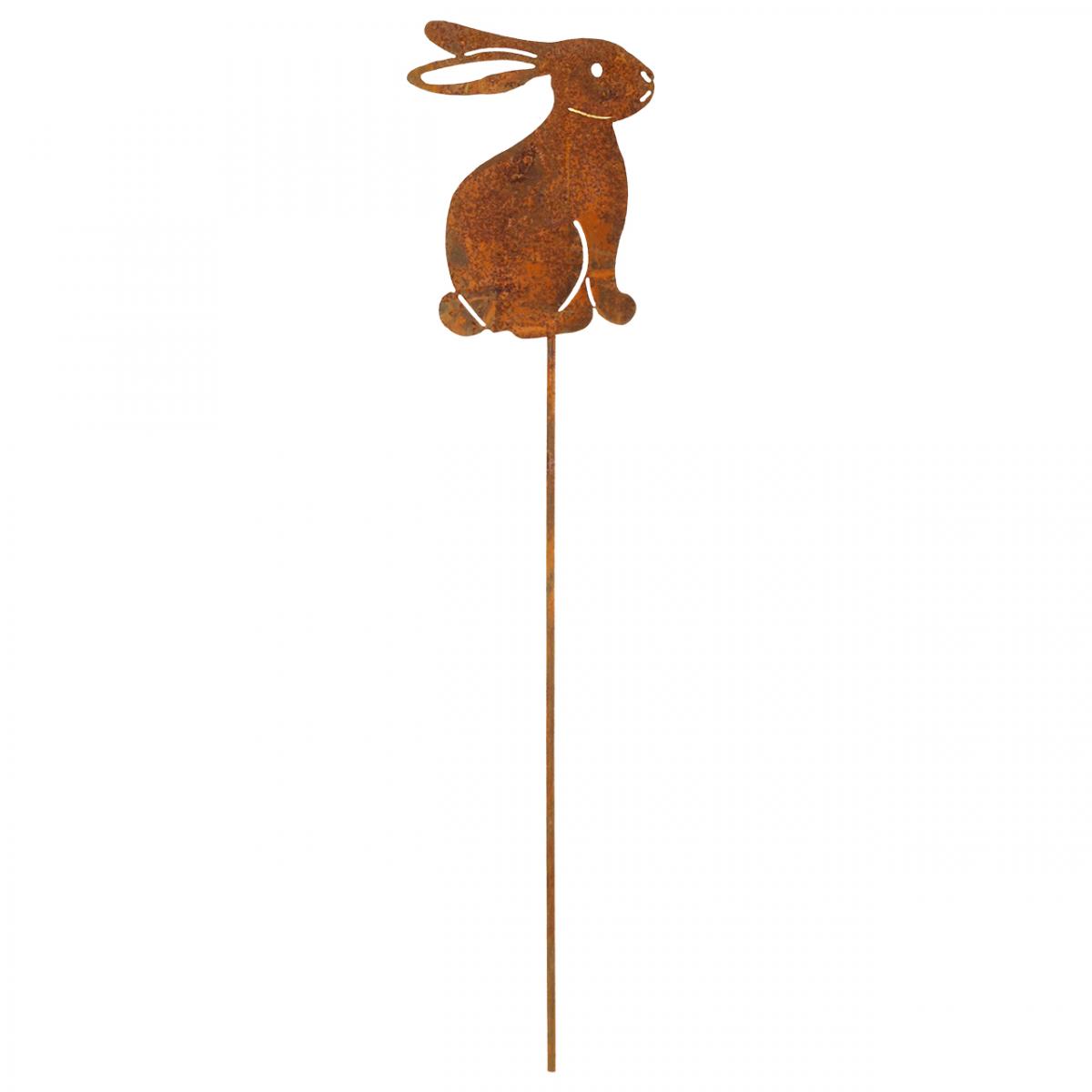 Sodo dekoracija, surūdijęs Velykų zuikutis, gėlių kuolas, metalinis, 7 × 9 cm, 6 vnt.