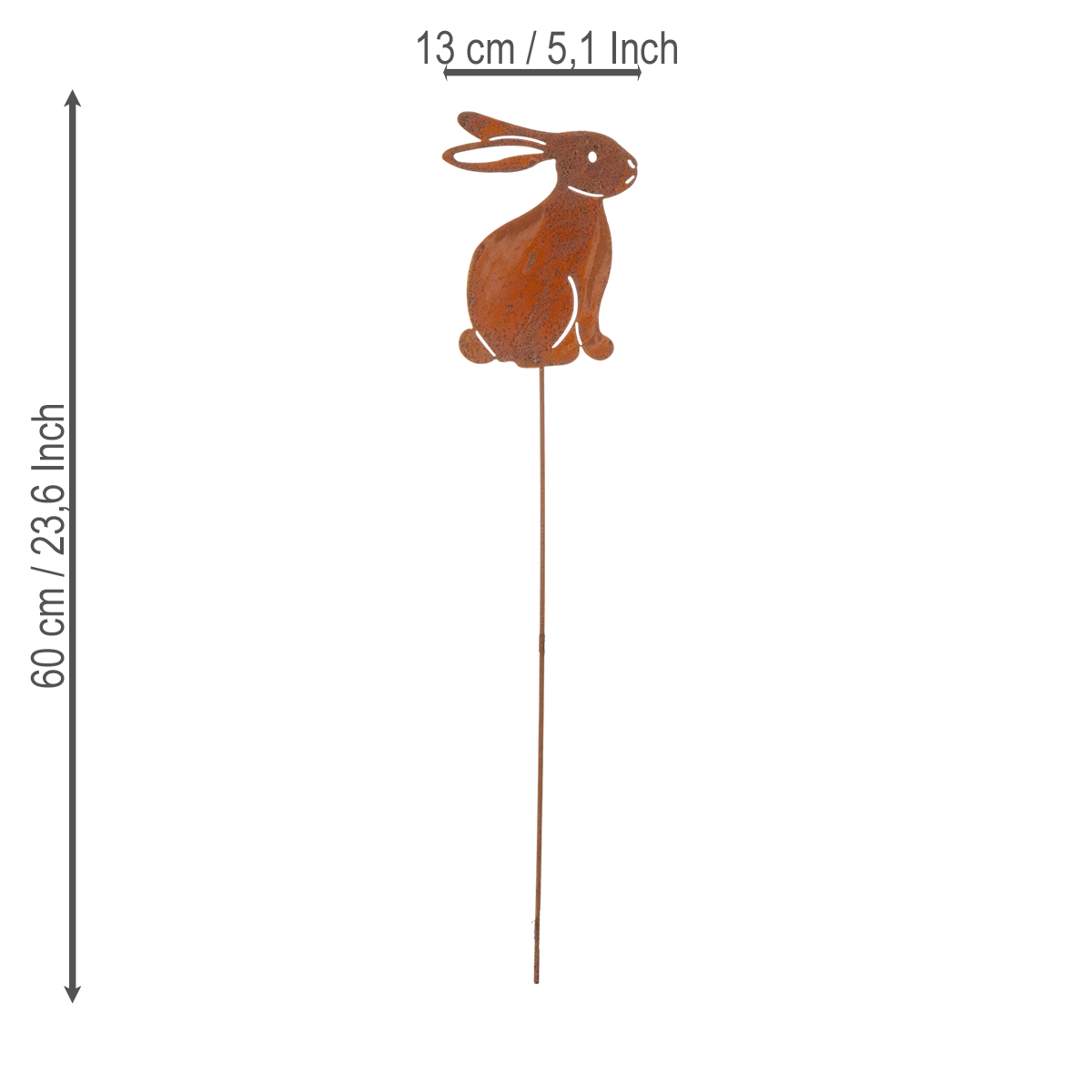 Šie 60 cm aukščio triušiai su šiek tiek pasvirusiu atraminiu strypu gali būti lengvai ir saugiai integruoti į gėlynus, vazonus ar priekinio sodo dekoracijas. Dėl paprasto, bet įspūdingo dizaino jie ne tik puikiai dera prie kaimiško stiliaus dekoro, bet ir sklandžiai dera prie aplinkos su vintažiniais ar „shabby chic“ elementais. Tiesiog nuostabūs, jei mėgstate natūralesnį vaizdą.