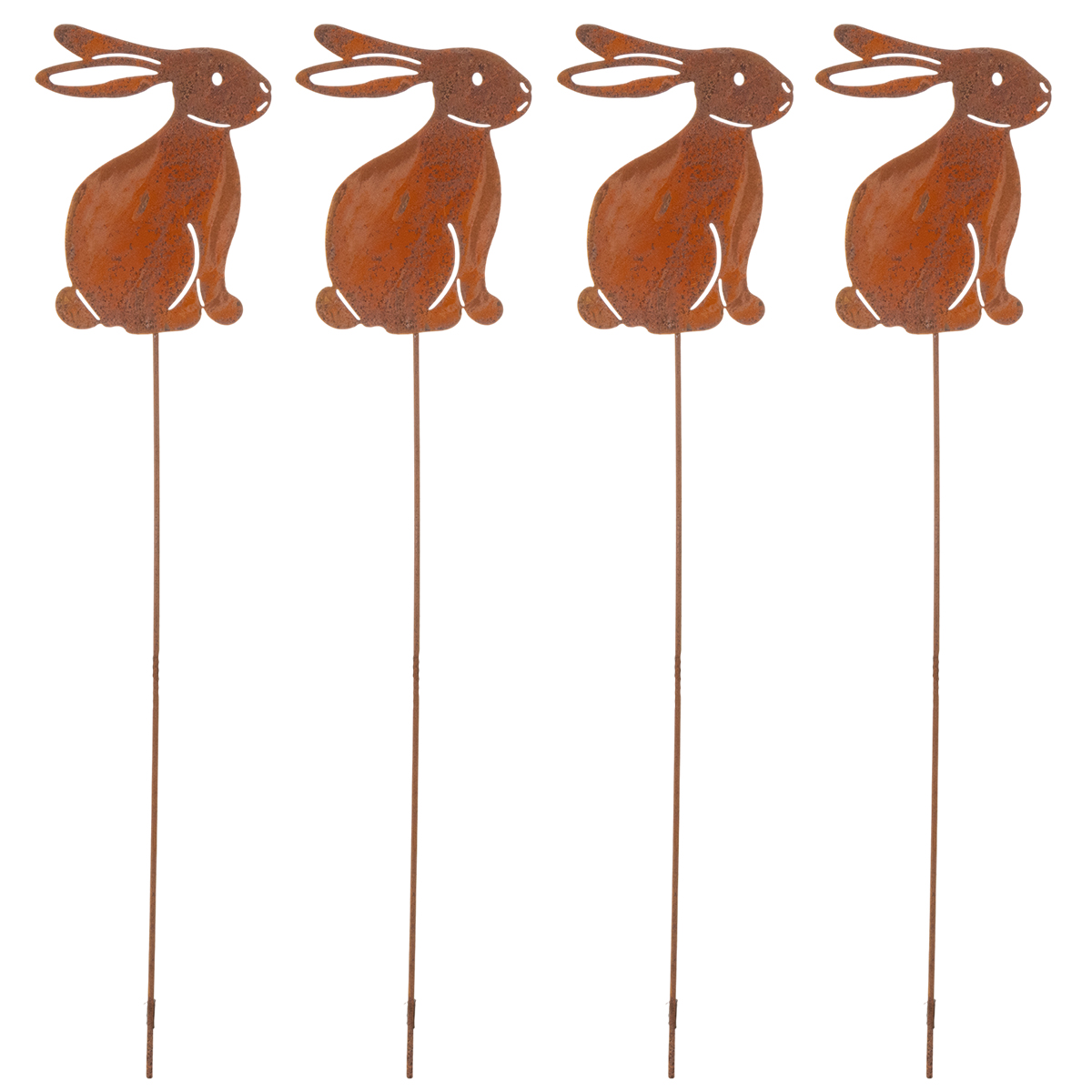 Produkto pavadinimas: Sodo kuolo formos triušis Velykų dekoracijai su surūdijusia apdaila, kaimiško stiliaus, 60 cm, 4 vnt.