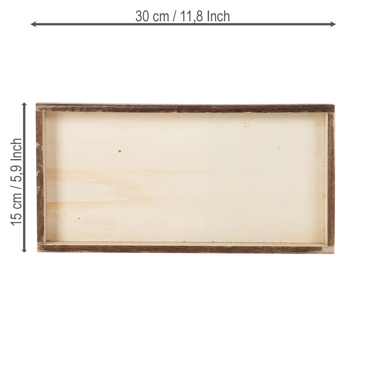 Šis stačiakampis medinis padėklas greitai taps jūsų nauju mėgstamiausiu namų palydovu – tiek praktiniais tikslais, tiek kaip dekoratyvinė detalė jūsų namuose. 30 cm ilgio, 15 cm pločio ir 3 cm aukščio, jame yra daug vietos kasdieniams daiktams, pavyzdžiui, raktams, rašikliams ar prieskonių indeliams. Tuo pačiu metu tai taip pat puiki vieta jūsų dekoracijoms eksponuoti: nesvarbu, ar ant jo dedate kvapnias žvakes, smėlį ir kriaukles, ar nedidelę gėlių kompoziciją – šis padėklas išryškins jūsų kūrybines idėjas ir sukurs tvarkingą, elegantišką vaizdą.