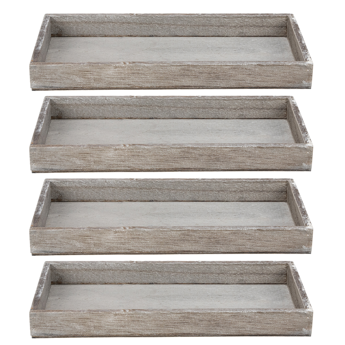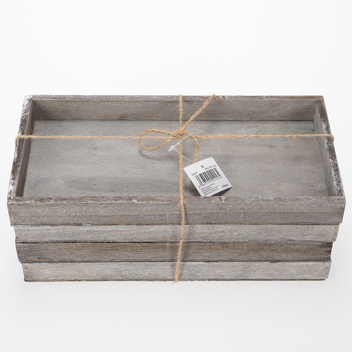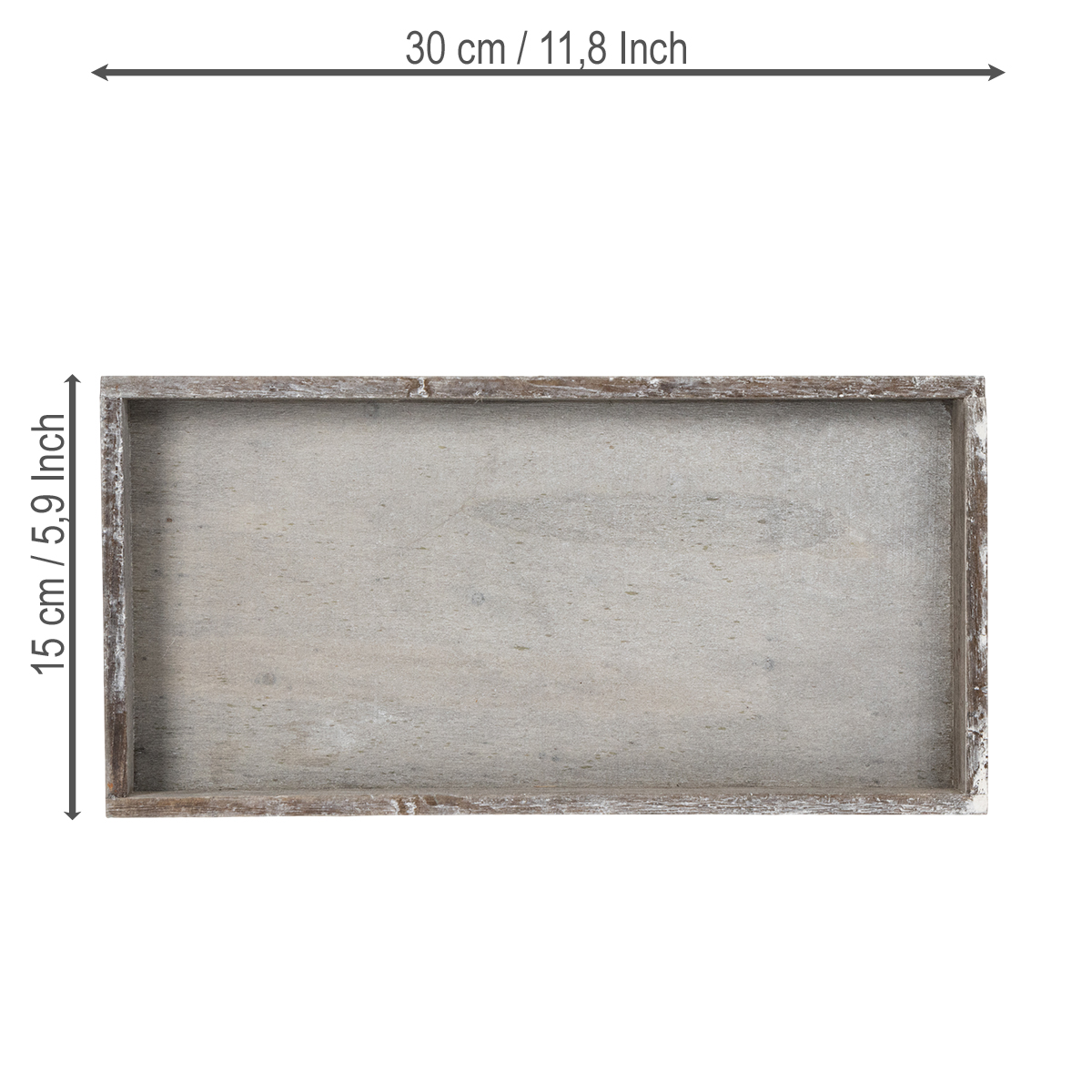 Šis stačiakampis medinis serviravimo padėklas puikiai atrodo bet kokioje situacijoje. Nesvarbu, ar tai stilingas dekoracijų pagrindas, ar praktiška vieta kavai ir pyragui, jis žavi savo paprasta išvaizda ir aukštos kokybės meistriškumu. Kaimiškas, vintažinis stilius puikiai dera su natūraliomis medžiagomis ir prislopintomis spalvomis. Šis padėklas patiks visiems, mėgstantiems dekoruoti moderniu kaimišku ar skandinavišku stiliumi. O galimybės? Jos beveik neribotos! Virtuvėje jį galite naudoti prieskoniams, aliejams ar smulkiems ingredientams laikyti lengvai pasiekiamoje vietoje ir patraukliai išdėstyti. Svetainėje jame yra vietos žvakėms, vazoms ar smulkiems aksesuarams, kuriuos norite parodyti. Medinis padėklas puikiai tinka net vonios kambariui – pavyzdžiui, kosmetikai, eteriniams aliejams ar muilams. Ypač praktiška savybė: dėl stačiakampės formos padėklus galite lengvai sudėti vieną ant kito arba laikyti spintelėse. Lengva, bet tvirta mediena yra patvari, todėl ji yra ištikimas kasdienis palydovas. O turėdami keturis rinkinyje esančius padėklus, galite iš karto įgyvendinti visas savo dekoravimo idėjas.