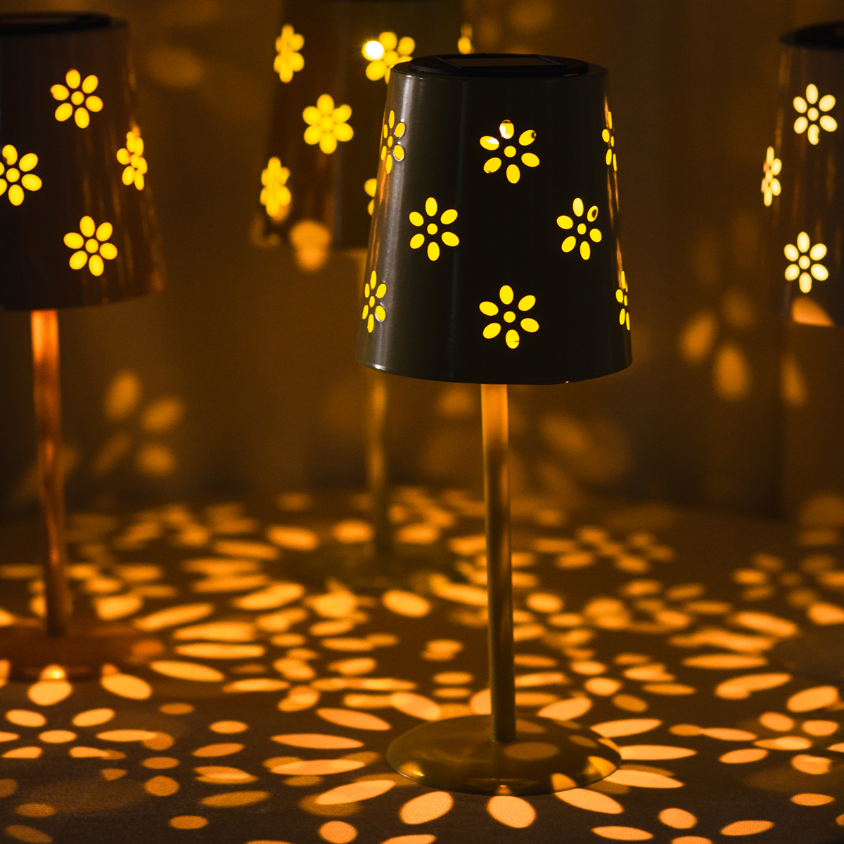 Romantiška saulės energija varoma stalinė lempa su žaviomis detalėmis