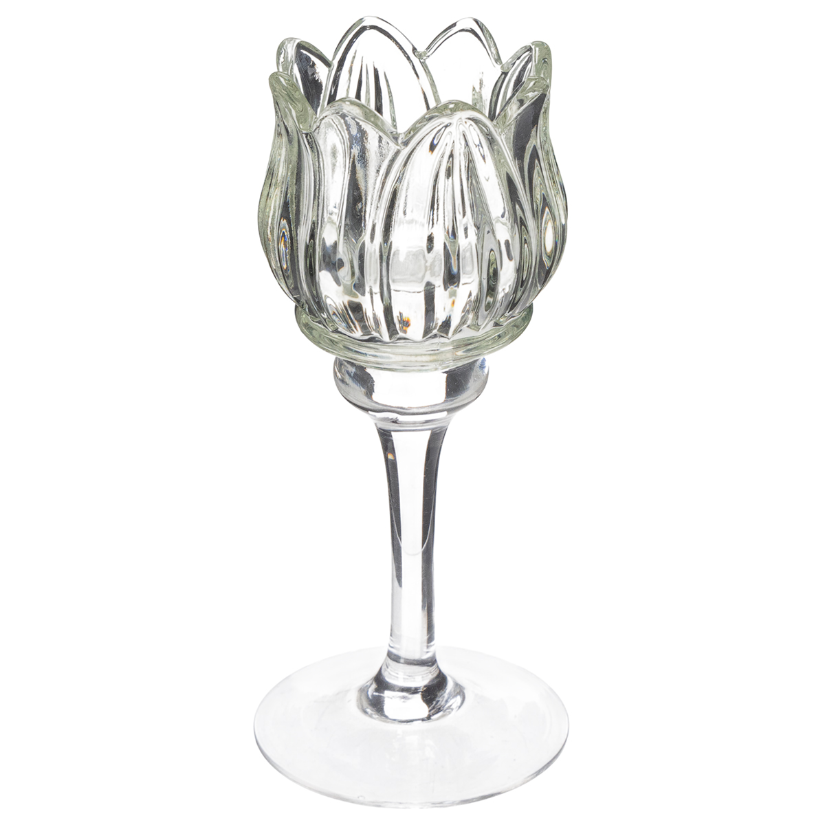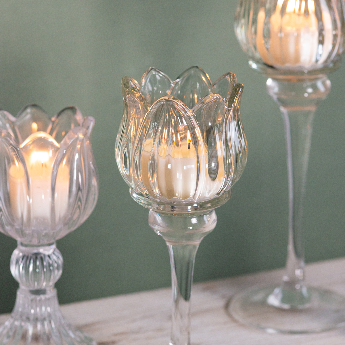 Stiklinė arbatinė žvakutė, dekoratyvinės gėlės formos, stilingai aplinkai, 17 cm