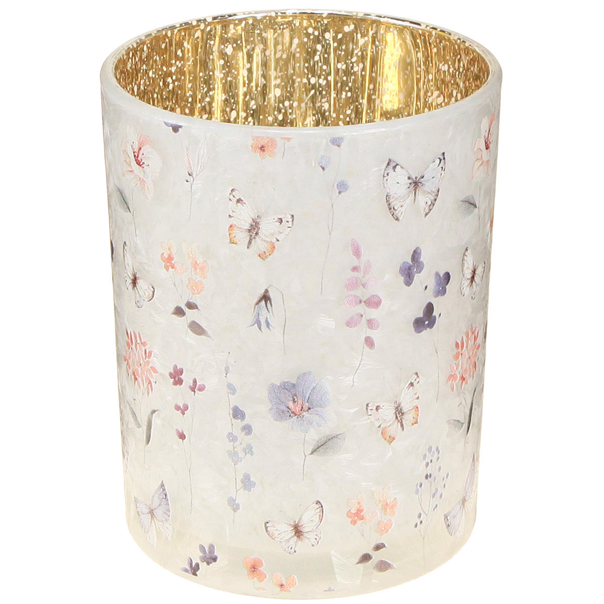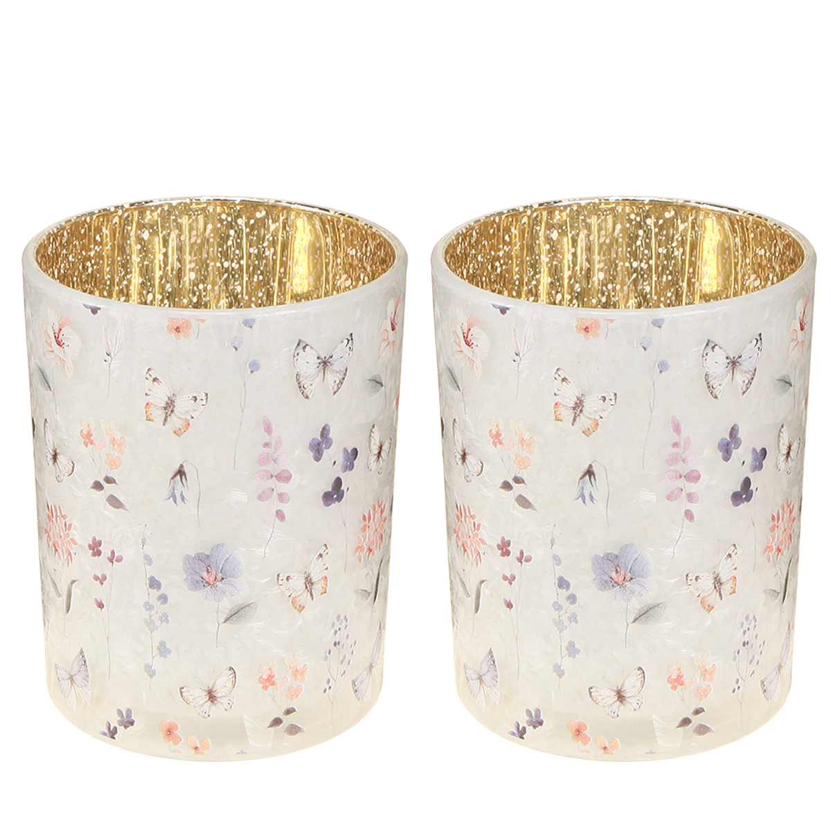 Stiklinė žvakučių laikiklis su drugelio motyvu jaukioms gyvenimo akimirkoms, 12,5 cm, 2 vnt.