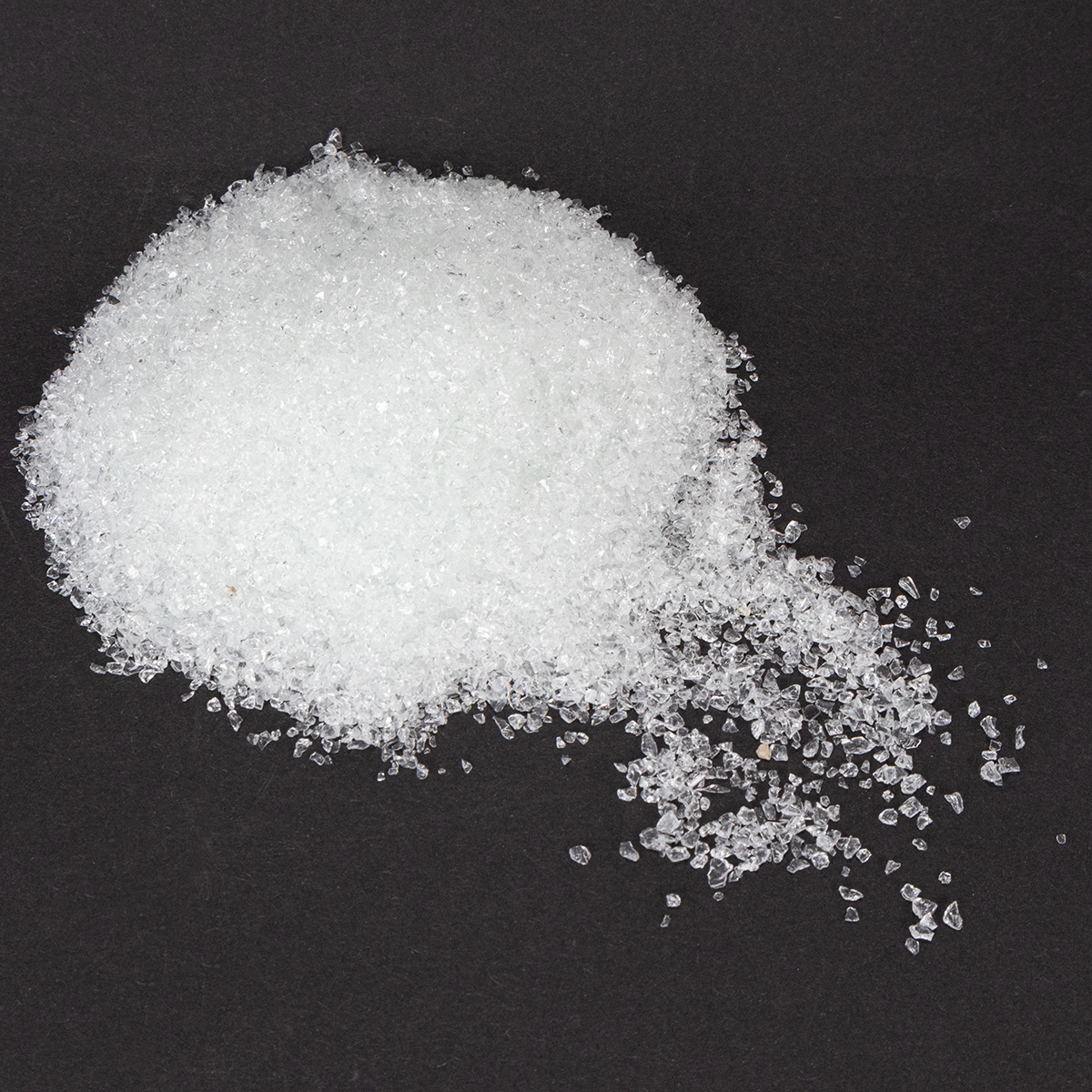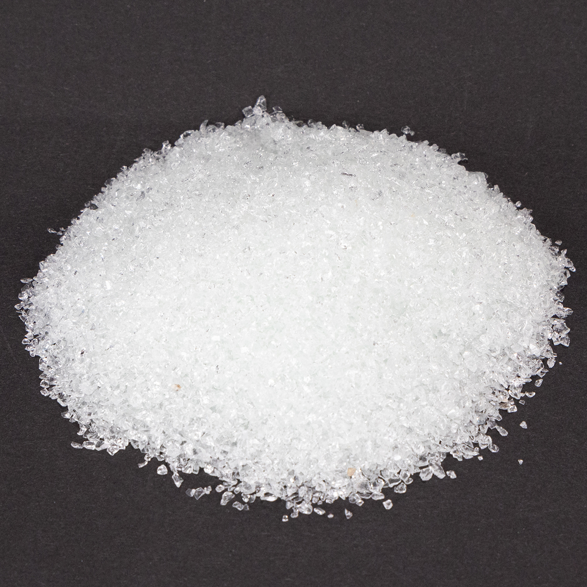 Skaidrios natūralios spalvos stiklo akmenys tiekiami maišelyje, kurio bendras svoris yra 2 kilogramai. Atskiri akmenys gali būti nuo 1 iki 2 milimetrų dydžio.
