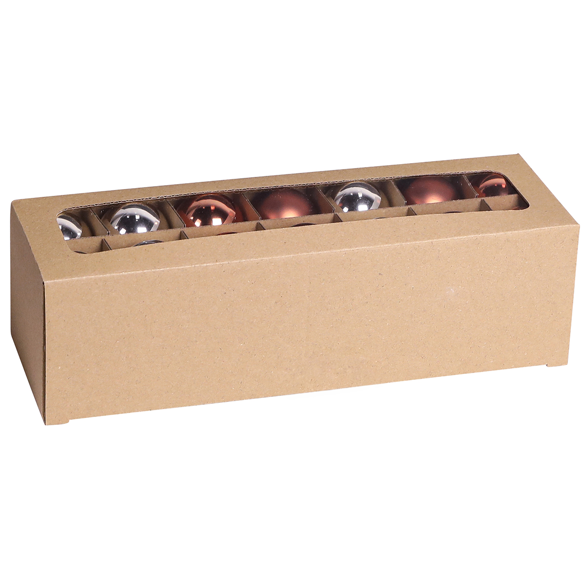 Stikliniai rutuliukai yra kartoninėje pakuotėje su skaidriu ekranu, kad galėtumėte tiksliai matyti, ką ketinate gauti. Parduotuvėje atskirai parduodamos kamuoliukų pakabos leidžia greitai ir lengvai pakabinti kamuoliukus. Tiesiog užsisakykite šiuos. Tai reiškia, kad galite iškart pradėti dekoruoti ir mėgautis Kalėdų laukimu.