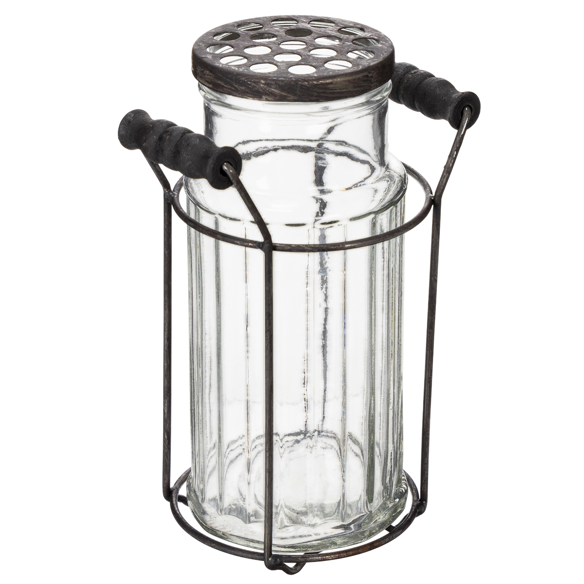 Ieškote nesenstančio dekoratyvinio elemento? Šis stiklinis butelis su metaliniu krepšeliu yra ne tik funkcionalus, bet ir tikras akį traukiantis elementas. Dėl permatomo paviršiaus ir kaimiško metalinio laikiklio jis spinduliuoja žavingą vintažinį stilių, kuris sklandžiai dera prie beveik bet kokio interjero dizaino. Nesvarbu, ar jis stovi ant svetainės stalo, virtuvėje, ar kaip kūrybinga vaza – šis gaminys tikrai pritrauks dėmesį! Ir žinote, kas dar geriau? Skylutės dangtelyje praktiškai kviečia stilingai eksponuoti atskiras gėles. Akimirksniu turėsite nedidelį meno kūrinį.