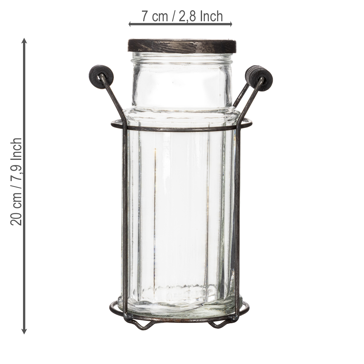 Stiklo ir metalo derinys suteikia jūsų namams industrinio elegancijos, o subtilus meistriškumas – klasikinio akį traukiančio dizaino. Pagamintas iš aukštos kokybės stiklo ir tvirto metalinio rėmo, šis butelis žavi ne tik vizualiai, bet ir savo patvarumu. Dangtelis su mažomis angomis jį daro ypač universalų: galite jį naudoti kaip vazą pavienėms gėlėms, kaip dekoratyvinį virtuvės įrankių laikiklį ar net kaip kūrybingą žvakidę. Nesvarbu, ar tai būtų svetainėje, virtuvėje ar koridoriuje – šis stiklinis butelis ras savo vietą bet kur.
