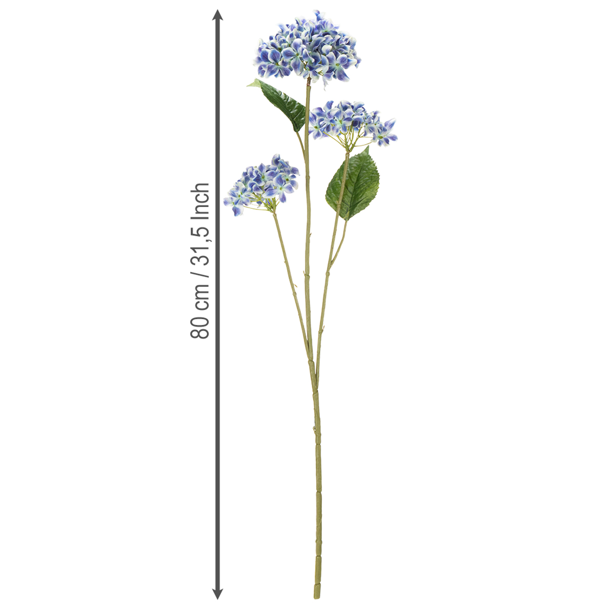 Ar mėgstate pagyvinti savo gyvenamąsias erdves individualiais akcentais, bet pavargote nuo vystančių gėlių? Tuomet Jums patiks mūsų žydinti hortenzijos šakelė stilingam namų dekorui! Įspūdingo 80 centimetrų ilgio ir gražių mėlynų žiedų dėka, ji atrodo kaip tobula natūralių hortenzijų kopija – be jokių rūpesčių dėl priežiūros. Trys žiedai kiekvienoje šakelėje atrodo taip tikroviškai, kad Jūsų svečiai tikrai nustebs! Nesvarbu, ar ji stovi ant valgomojo stalo, didelėje grindų vazoje, ar kaip meninės kompozicijos dalis, ši dirbtinė hortenzija suteiks elegancijos bet kuriems namams.