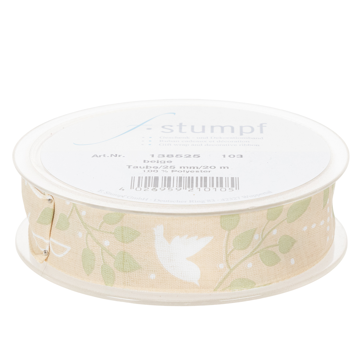 Produkto pavadinimas: Sutvirtinimo, Komunijos ir Krikšto juostelė - smėlio spalvos, 25 mm pločio, 20 m ilgio