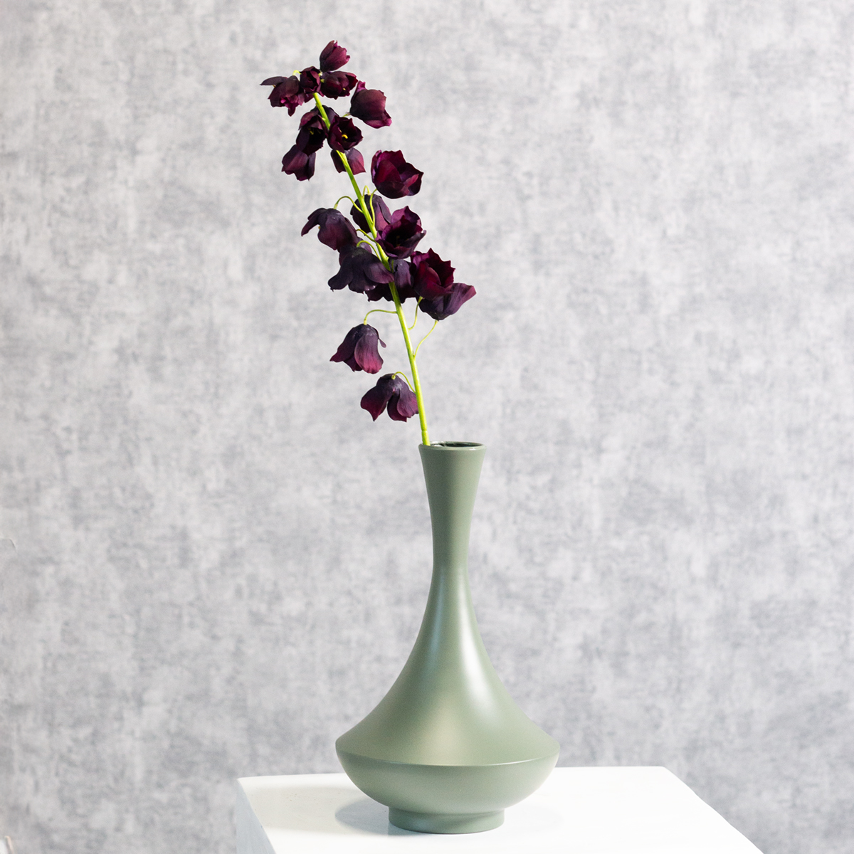 Formos, spalvos ir tekstūros sąveika daro šią fritiliariją tokią ypatingą. Sodri alyvinė spalva yra elegantiška ir patraukli, tačiau neužgožianti. Medžiaga – aukštos kokybės poliesteris ir plastikas – užtikrina ne tik realistišką išvaizdą, bet ir ilgaamžiškumą. Subtilūs žiedlapiai spinduliuoja lengvumu ir elegancija, o ilgas stiebas – tvirtas ir lankstus. Ji puikiai dera prie modernių ar kaimiško stiliaus kompozicijų, tačiau taip pat puikiai papildo vintažinius ar Art Deco konceptus.