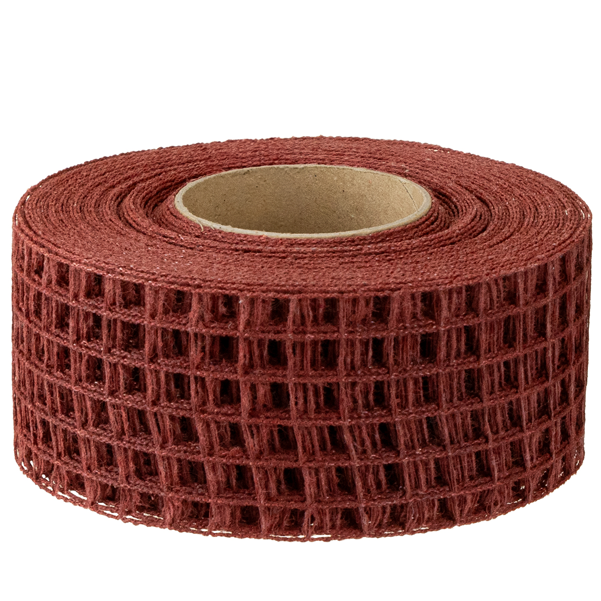 Fonas vis dar matomas per šiurkštų tinklelį, o juostelė taip pat pakankamai plati, kad ant jos būtų galima pastatyti stalo vazą su gėlėmis. Dėl tamsiai raudonos bordo spalvos medžiaginę juostelę galite naudoti ir šventinėms progoms bei papuošti žibintą ar sodinuką, apvyniodami tinklinį kaspiną ir pritvirtindami trupučiu klijų ar adata. O jei norite, pavyzdžiui, gėlių kompoziciją pasidaryti patys, šią juostelę galite naudoti ir vidiniam paviršiui uždengti, ir kaip laikiklį vielui ir spaustukams!