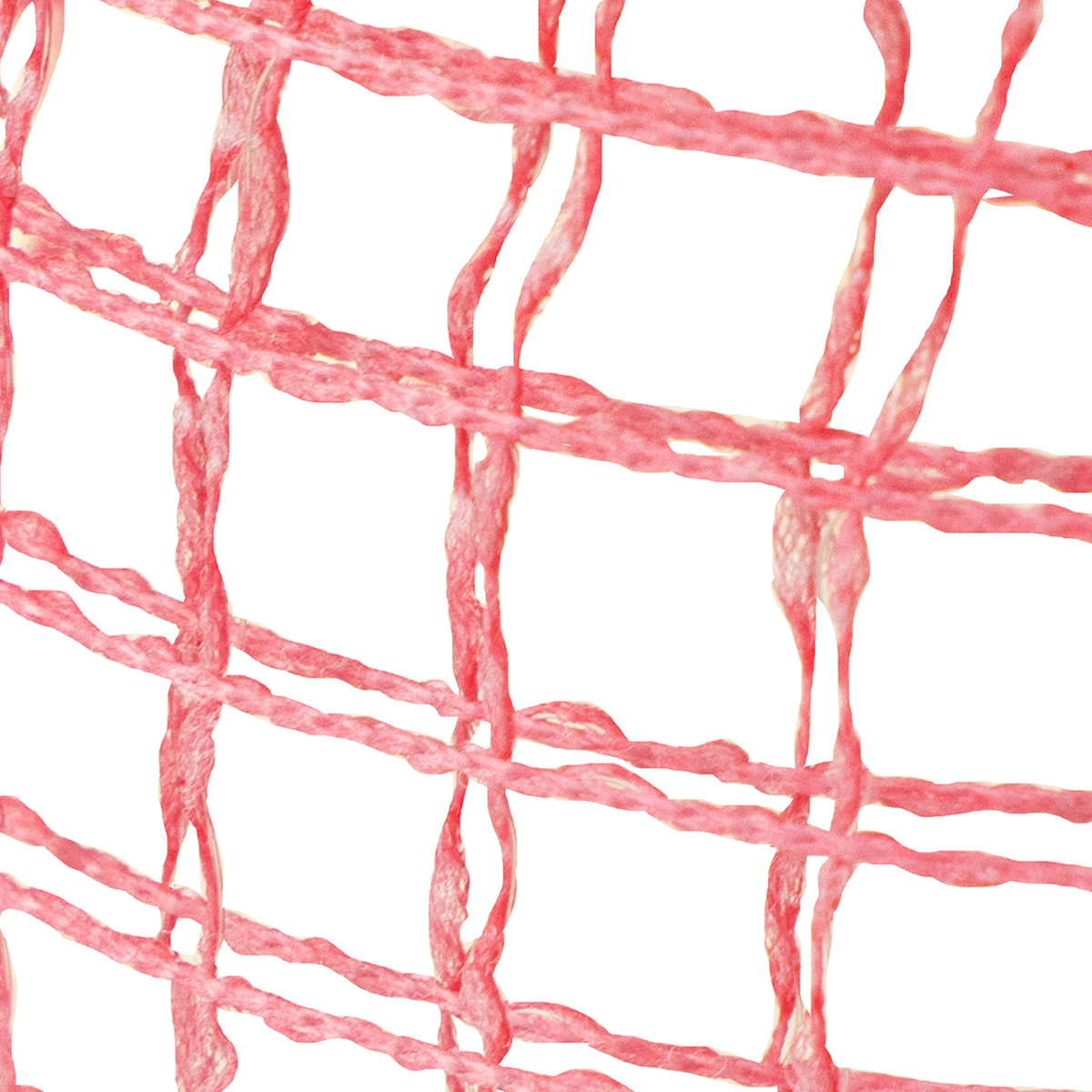 Rožinė tinklelio juosta suvyniota į ritinį ir yra maždaug 10 metrų ilgio, o plotis apie 4,5 centimetro.