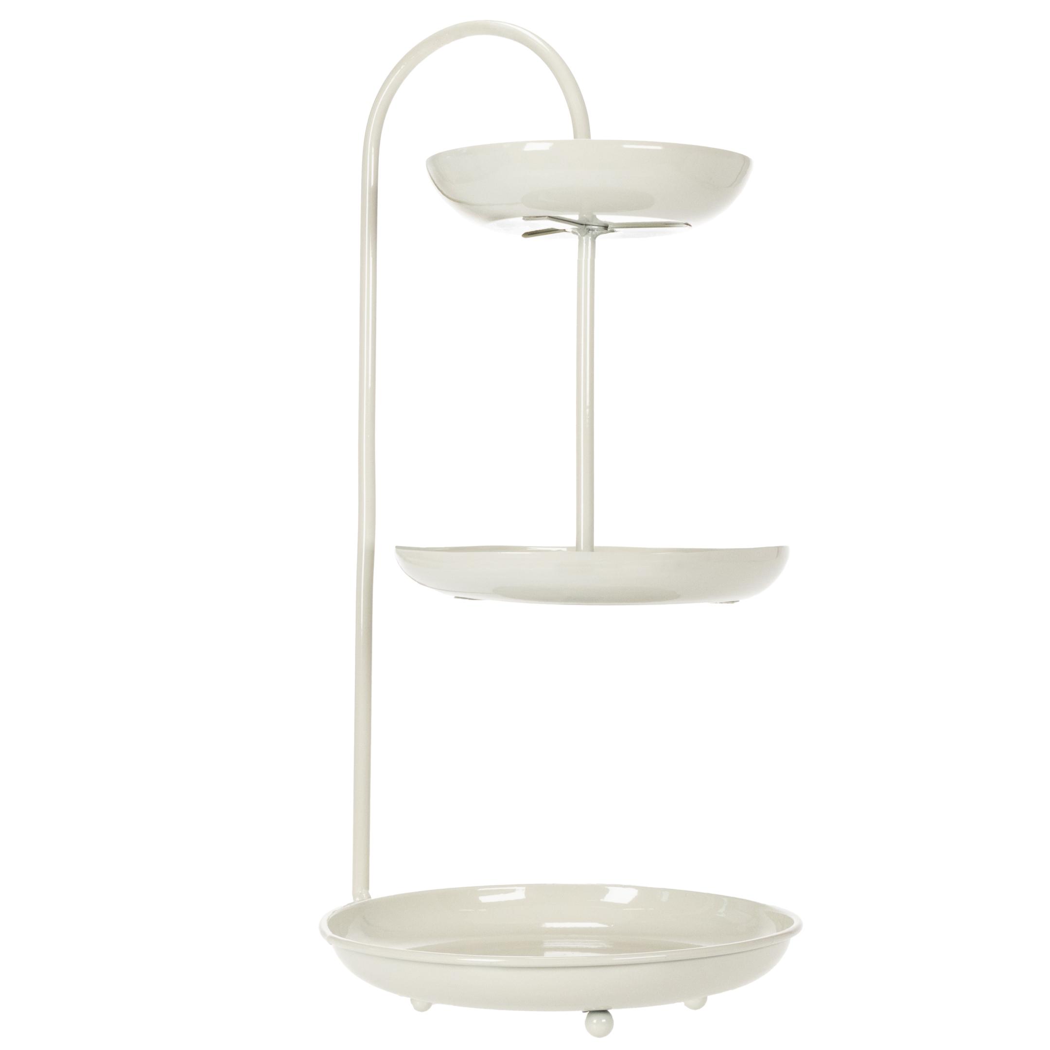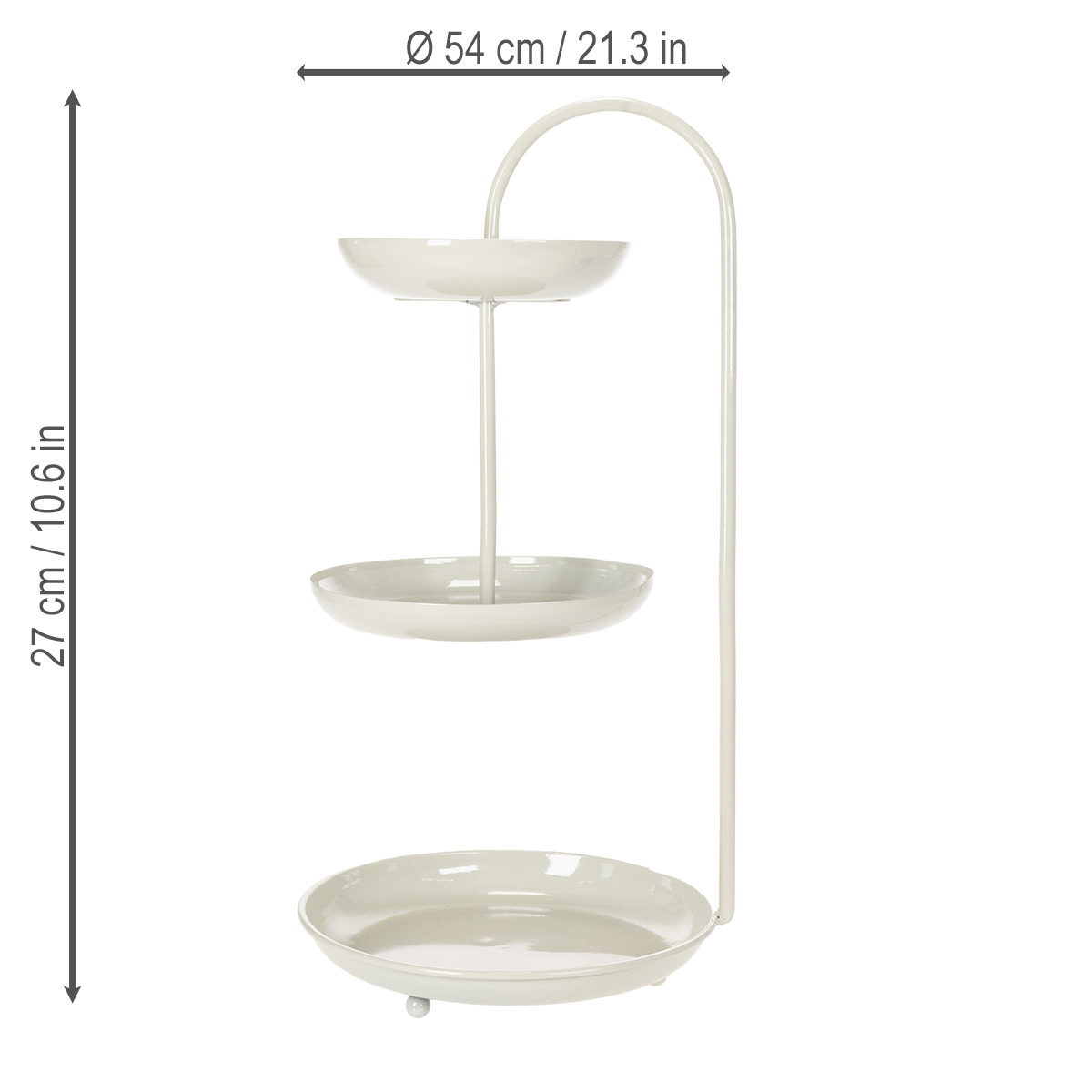 Dėl savo švarios, modernios išvaizdos šis trijų aukštų serviravimo stovas tinka bet kokiam kambariui ir suteikia ypatingo akcento jūsų dekorui. Trys aukštai yra skirtingo skersmens (26 cm, 23 cm ir 18 cm) ir suteikia vietos supakuotiems maisto produktams ar dekoratyviniams elementams. Neutrali spalvų gama leidžia jį lengvai derinti su kitais dekoravimo stiliais – minimalistiniu, skandinavišku ar net bohemišku. Stovas taip pat yra praktiškas: jį lengva valyti, jis taupo vietą ir yra tvirtas. Puikiai tinka naudoti ant svetainės stalo, kaip vestuvių stalo centrinę dalį ar teminiams vakarėliams! Atkreipkite dėmesį: jis netinka nesupakuotiems maisto produktams, todėl idealiai tinka šokoladams, keksiukams formelėje ar dekoratyvinėms figūrėlėms. Derinkite stovą su kitais „Floristik24“ gaminiais, tokiais kaip stilinga stalo lempa ar derančiomis gėlių vazomis, kad sukurtumėte tobulą atmosferą!