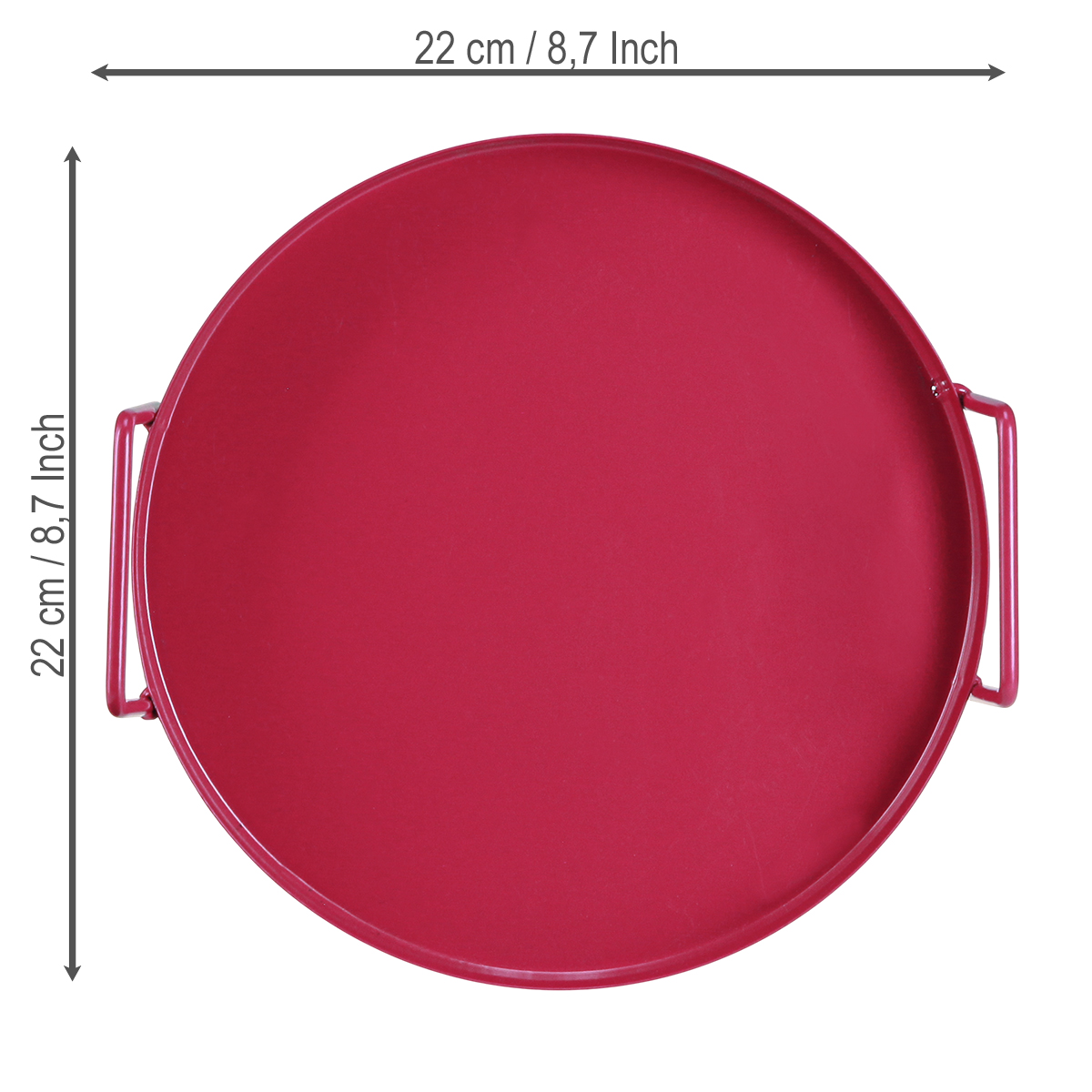 Šis apvalus, ryškiai raudonos spalvos metalinis padėklas, kurio skersmuo 22 cm, ne tik traukia akį, bet ir yra išskirtinai funkcionalus. Matinės rankenėlės užtikrina saugų suėmimą, o padėklas yra patogus ir praktiškas. Nesvarbu, ar norite stilingai patiekti gėrimus ir užkandžius svečiams, ar parodyti mėgstamus augalus, šis raudonas padėklas visada palieka puikų įspūdį. Tvirtas metalinis paviršius lengvai valomas ir pasižymi įspūdingu patvarumu – tiesiog patikimas pagalbininkas kiekvienoje situacijoje.