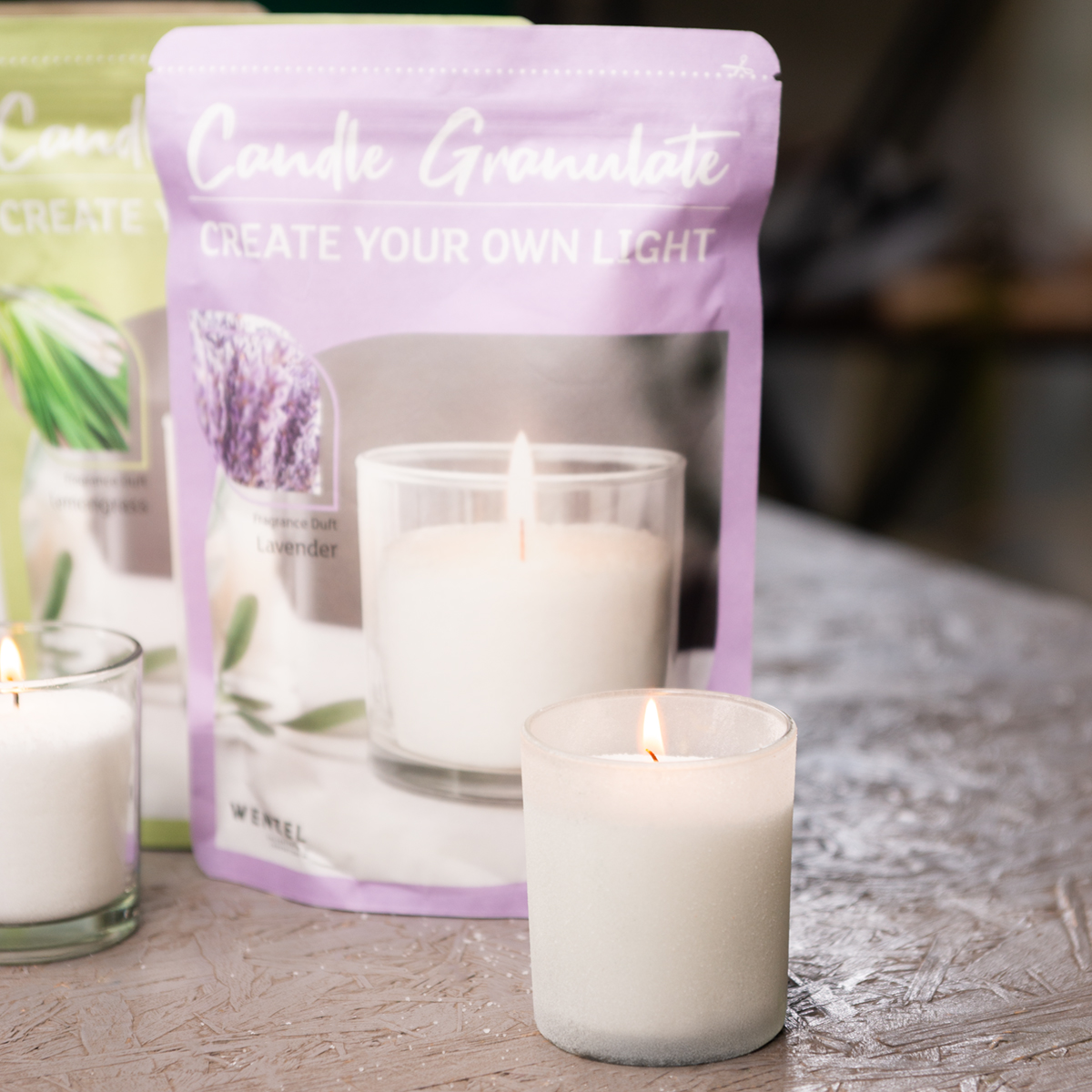 Vaško granulės yra universalios ir idealiai tinka stiklinėms žvakėms. Švelni balta granulių spalva suteikia šiltą, kviečiančią šviesą ir papildo bet kokį interjerą.