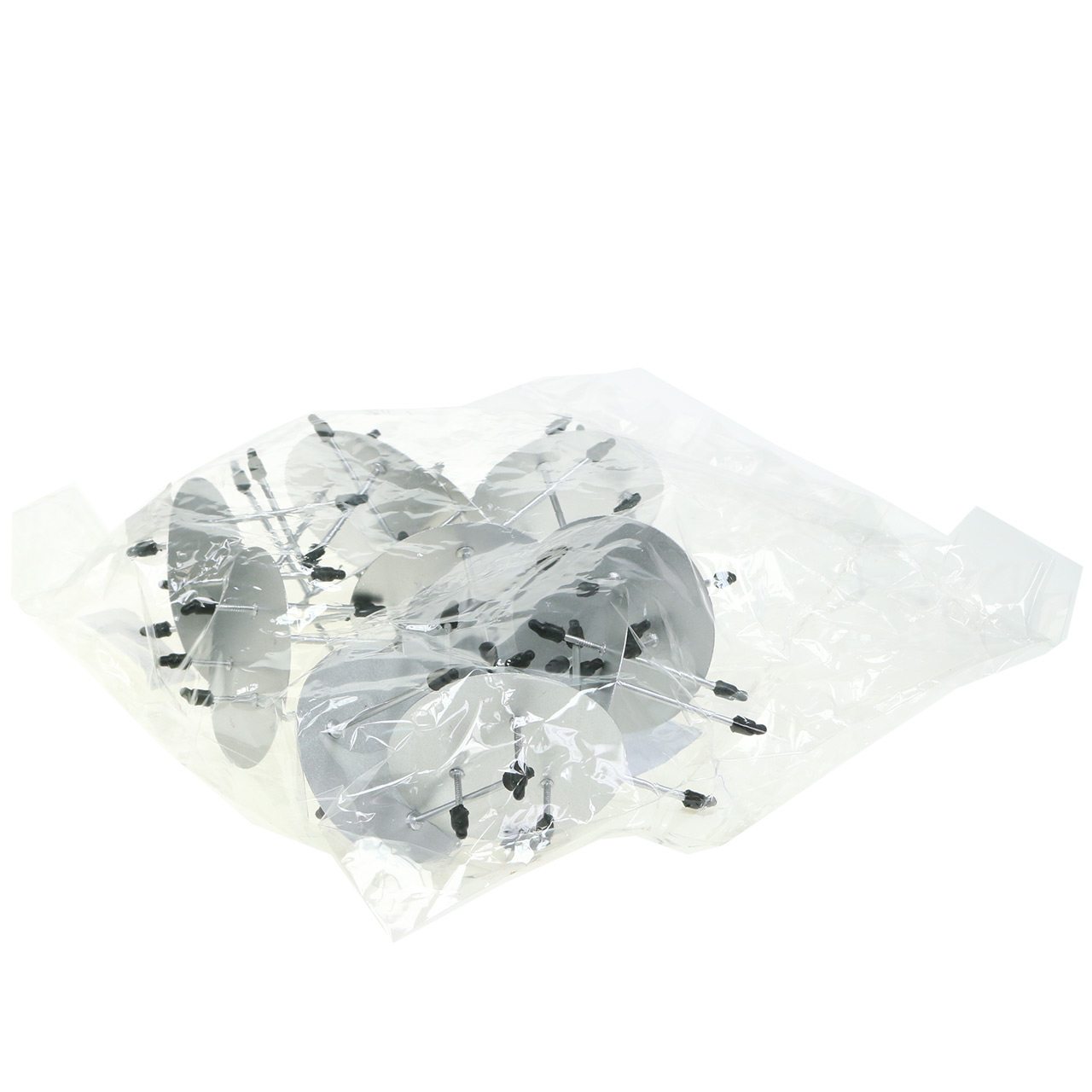 Sidabrinės VIANA žvakidės bendras aukštis yra 7,5 cm, o skersmuo - apie 6,5 centimetro. Žvakės smaigalys yra apie 2,5 colio, o kištuko smaigaliai yra apie 5 colių ilgio. Pakuotėje yra 12 šių gražių žvakidžių gėlių kompozicijai.