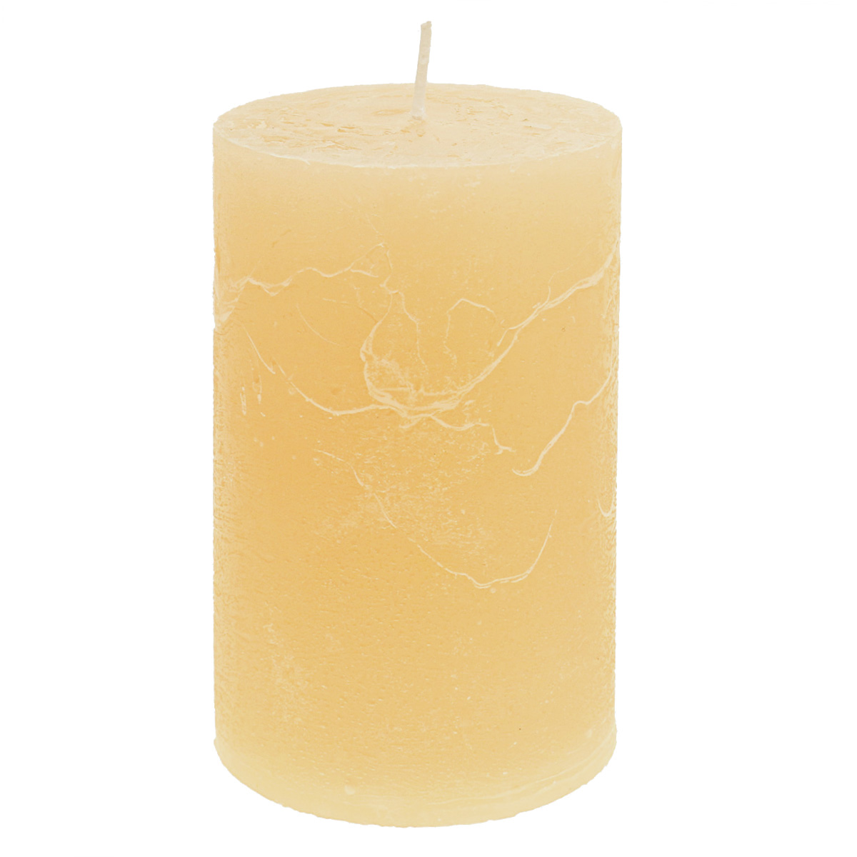 Produkto pavadinimas: Žvakės Abrikosų šviesios vienspalvės stulpinės žvakės 60×100mm 4 vnt.