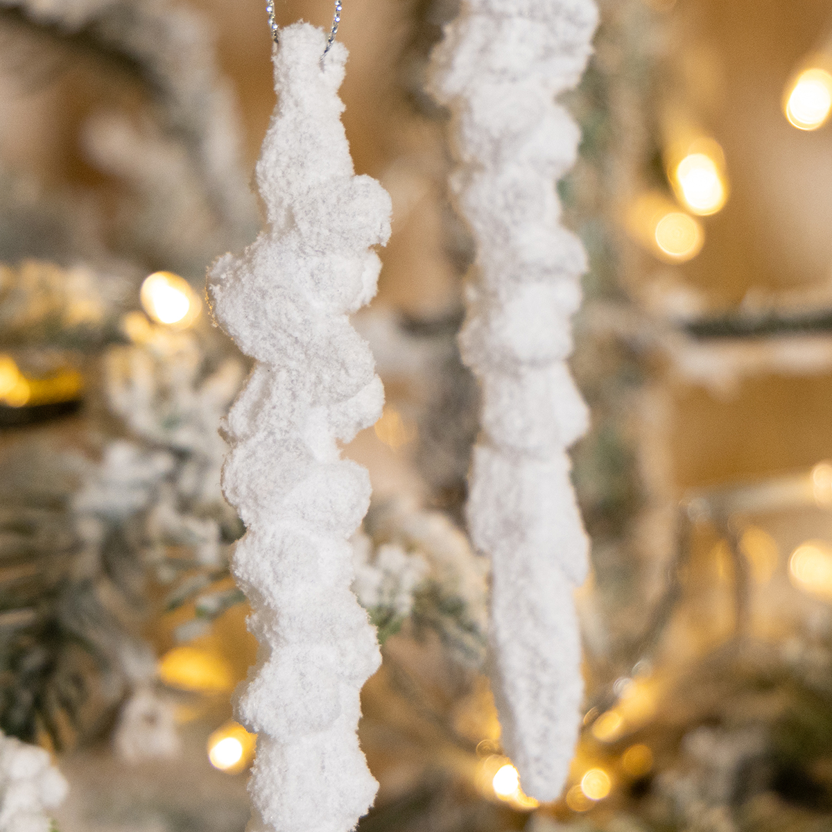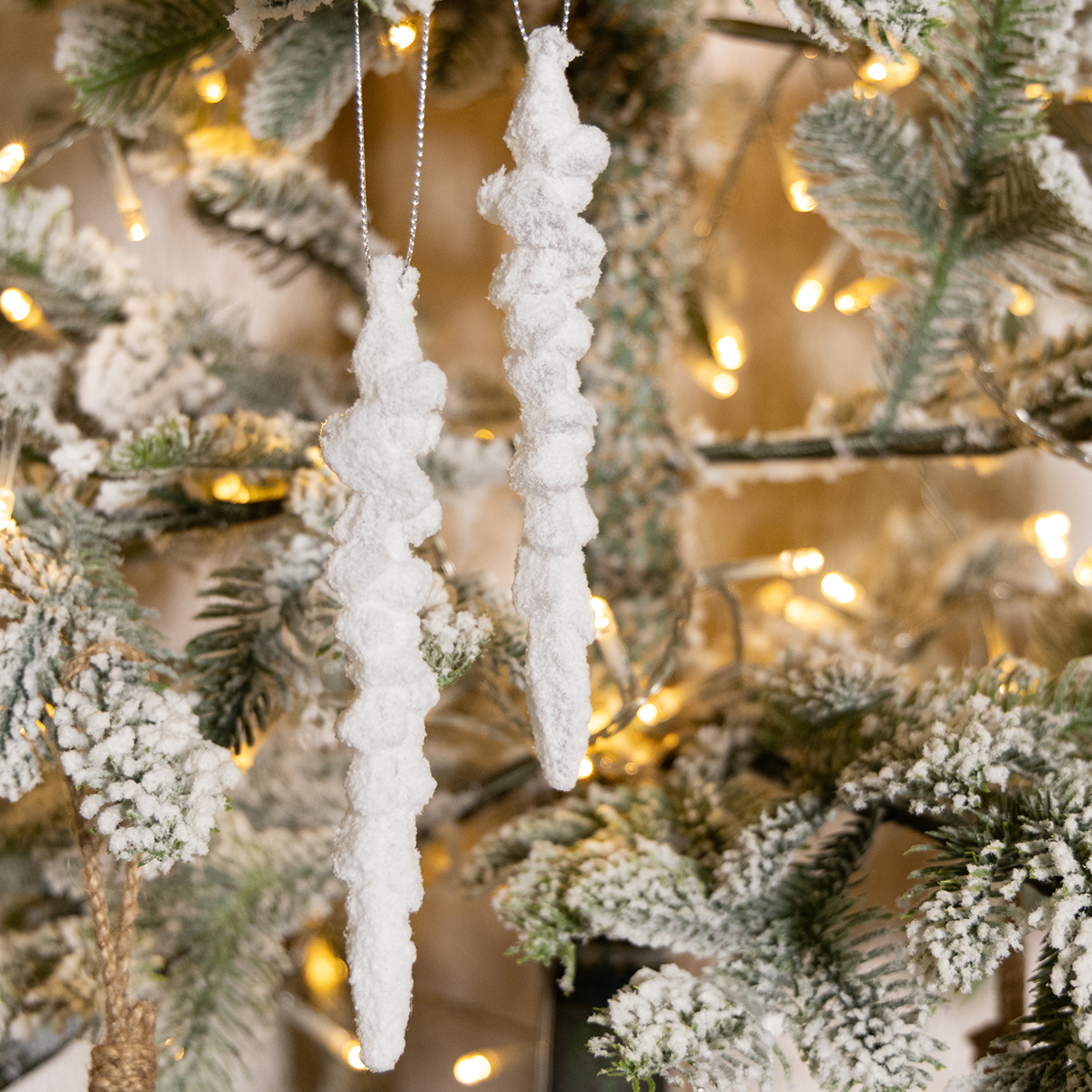 Tvirti plastikiniai pakabukai ne tik žavi autentišku dizainu, bet ir yra patvarūs bei lengvi. Net jei nukristų, jie lengvai nesulūš. Kitas privalumas – lengvas pakabinimas: sidabrinis siūlas harmoningai dera su bet kokiu dekoru ir užtikrina, kad varvekliai tvirtai kabėtų. Nesvarbu, ar jie būtų ant Kalėdų eglutės, ar ant durų, ar kaip stalo puošmena – šie pakabukai bus atmosferinis jūsų žiemos ir kalėdinio dekoro papildymas.