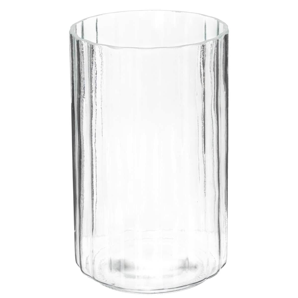 Skaidri stiklinė vaza su dryžuota tekstūra – praktiška ir elegantiška