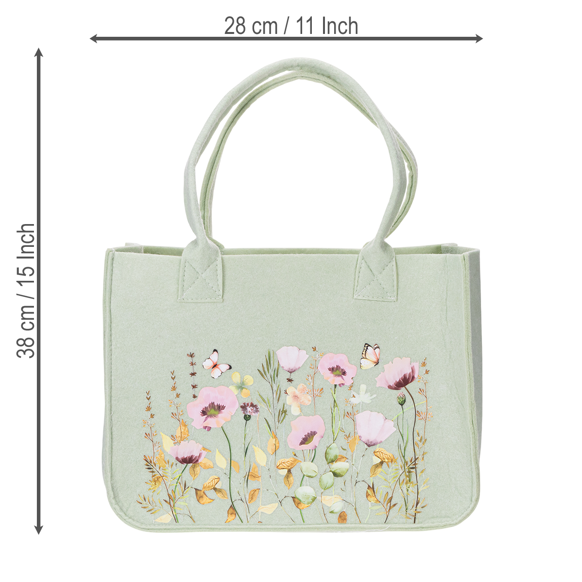 Mūsų gėlėtas veltinio krepšys – ne šiaip rankinė. Jis žavi natūraliu dizainu, tvirta medžiaga ir daugiafunkciškumu. Dėl didelių 38 cm aukščio, 28 cm ilgio ir 15 cm pločio matmenų jis siūlo tobulą erdvės ir patogumo pusiausvyrą. Nesvarbu, ar tai knygos, apsipirkimas, nešiojamas kompiuteris ar net pikniko pledas – viskas turi savo vietą. Dėl tvirtų veltinio dirželių krepšį galima patogiai nešioti ant peties.