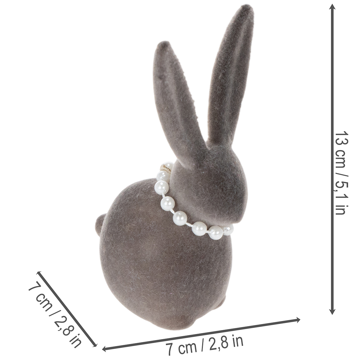 Velykų zuikučio dekoracija su perlų vėriniu, zuikutis svetainei ir Velykų stalui, 13 cm, 3 dalys