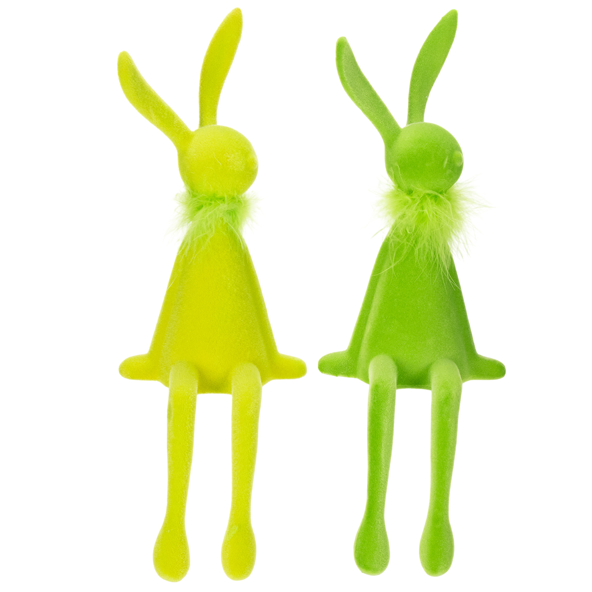 Norite savo namus paversti šventine pavasario stebuklų šalimi? Šie žavūs Velykų zuikučiai, puikiai tinkantys pakabinti lentynose, tai padarys akimirksniu! Šis gaivių žalių atspalvių duetas ne tik suteiks jūsų namams velykinės nuotaikos, bet ir papuoš bet kurią svetainę. Nesvarbu, ar jos pastatytos ant lentynos, palangės, ar kaip valgomojo stalo centrinis elementas, šios aksominės dekoratyvinės figūrėlės suteiks jūsų interjerui modernumo ir žaismingumo. O geriausia dalis? Subtilus plunksnų boa suteikia ypatingo žavesio – tikras žvilgsnio traukėjas!