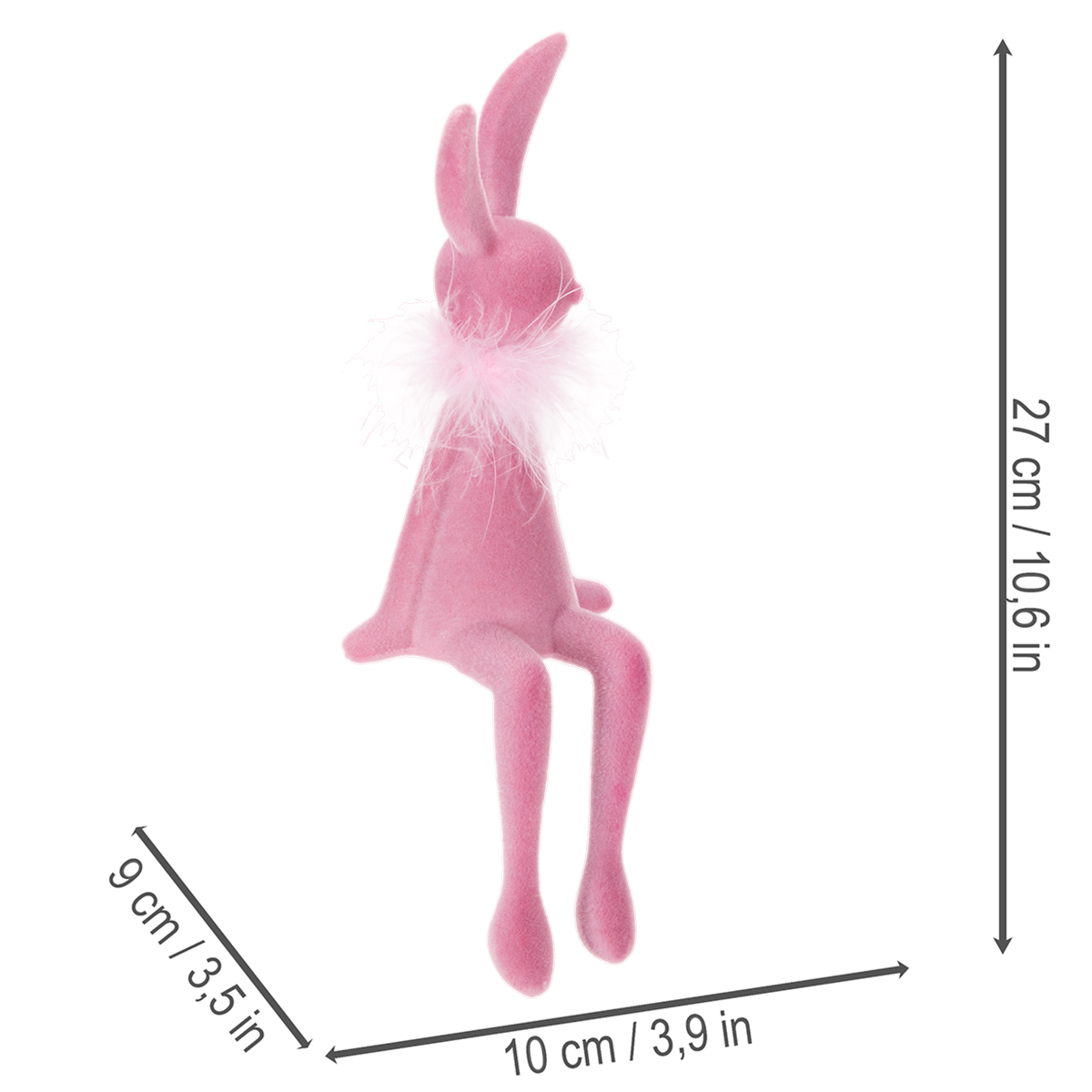 Produkto pavadinimas: Velykų zuikučio figūrėlė su plunksnų boa, lentynos padėklas, dekoratyvinė Velykų figūrėlė, 27 cm, 2 dalys